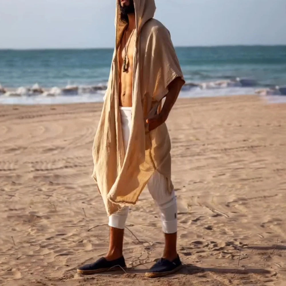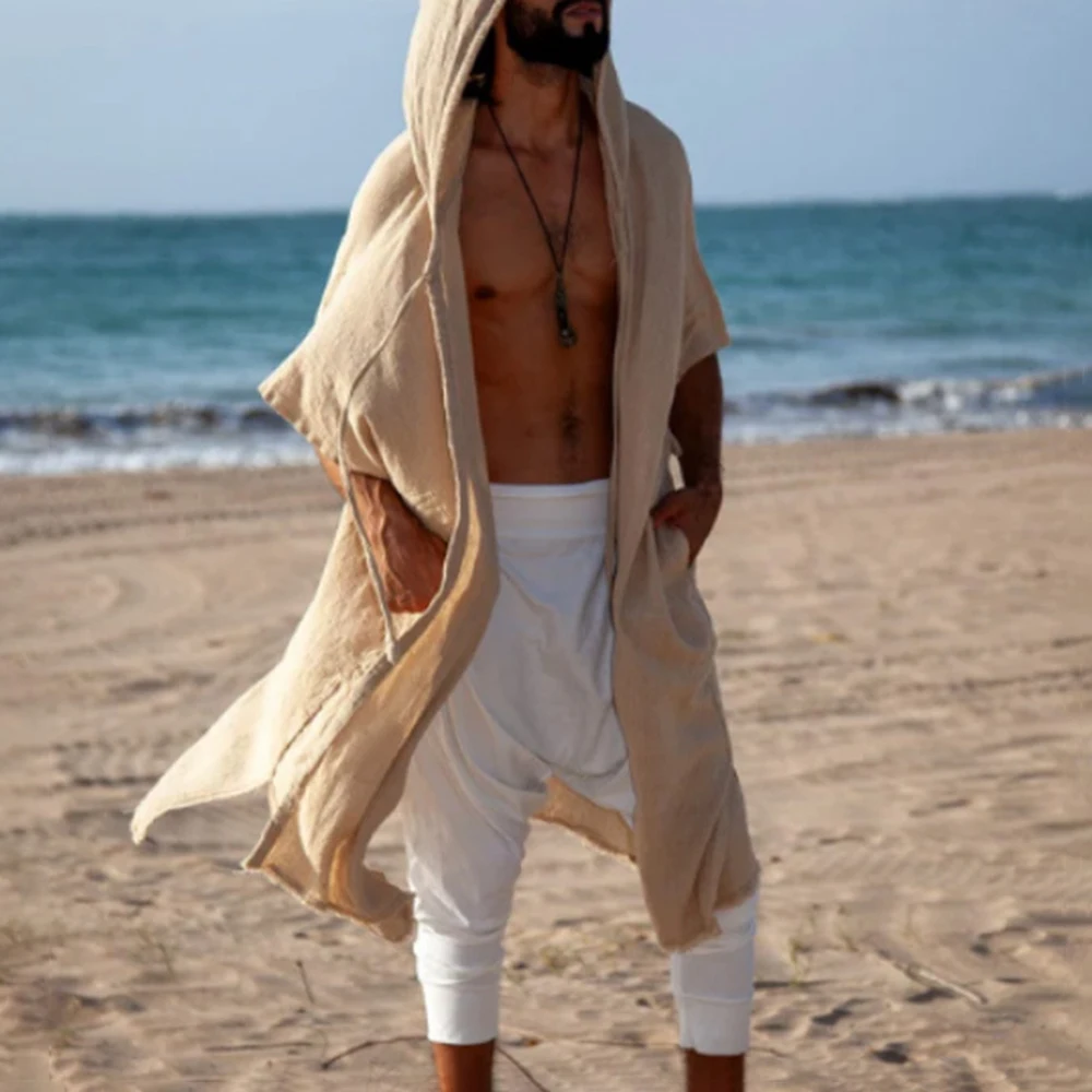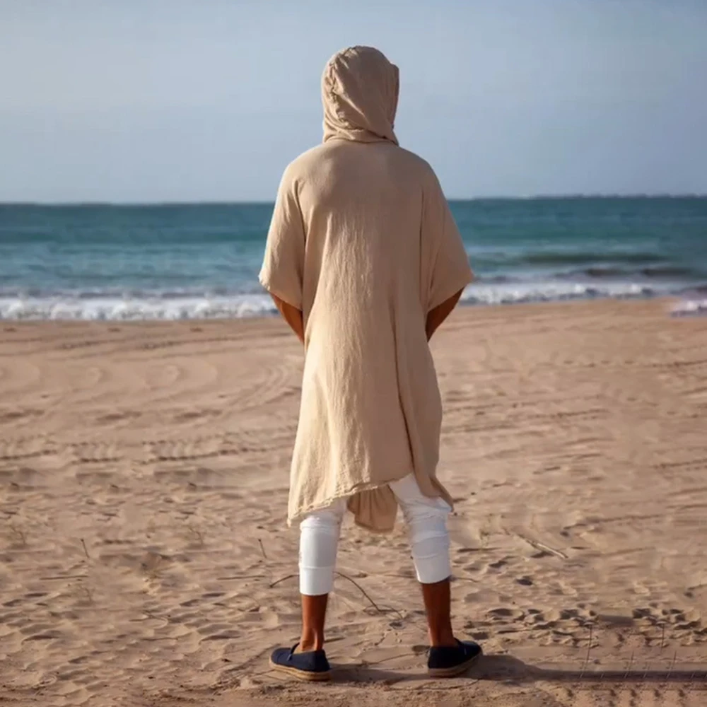 HEARUJOY - Summer Mens Solid Color Hooded Sun Protection Beach Clothes Fashionable Travel Holiday Style All-match Casual Cape Clothes