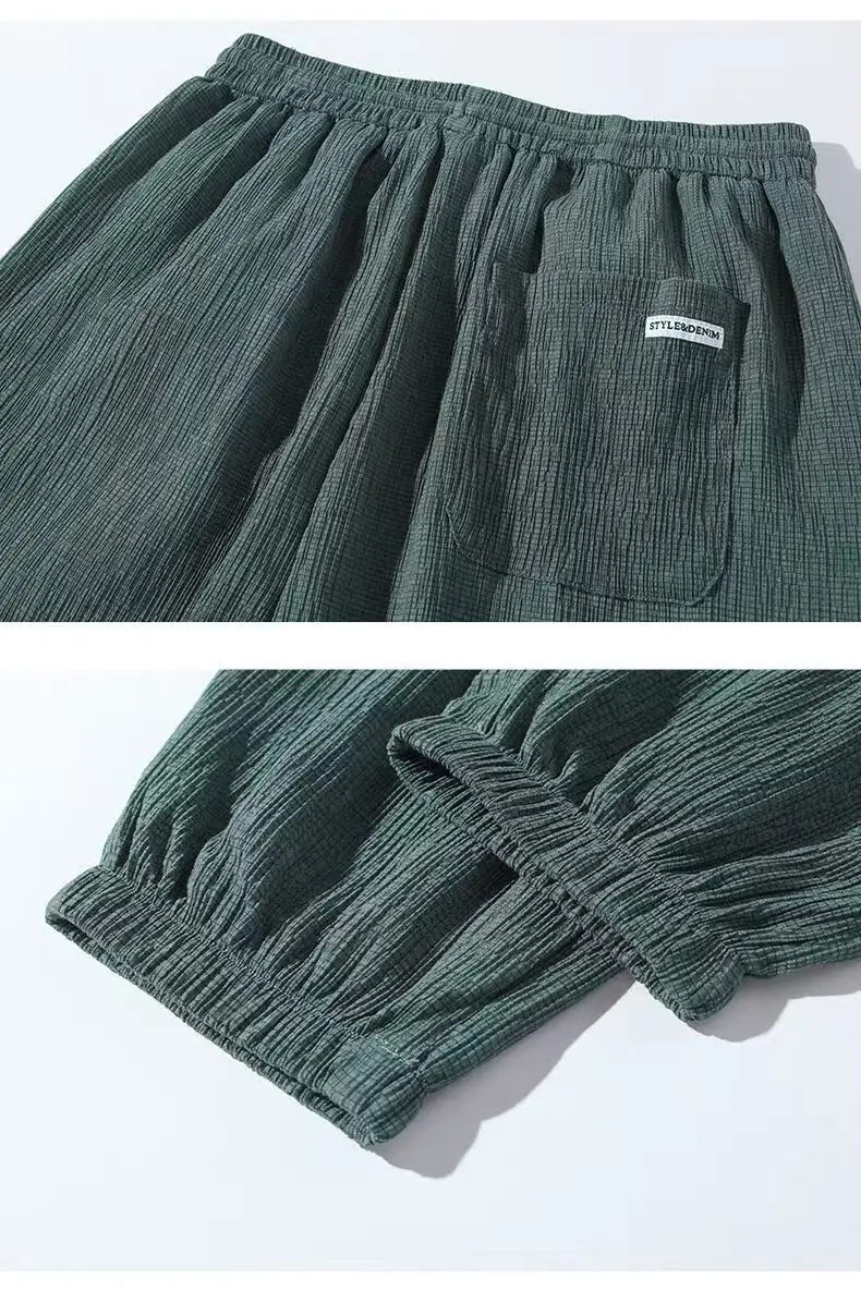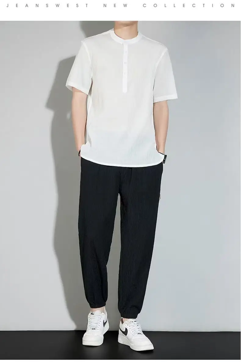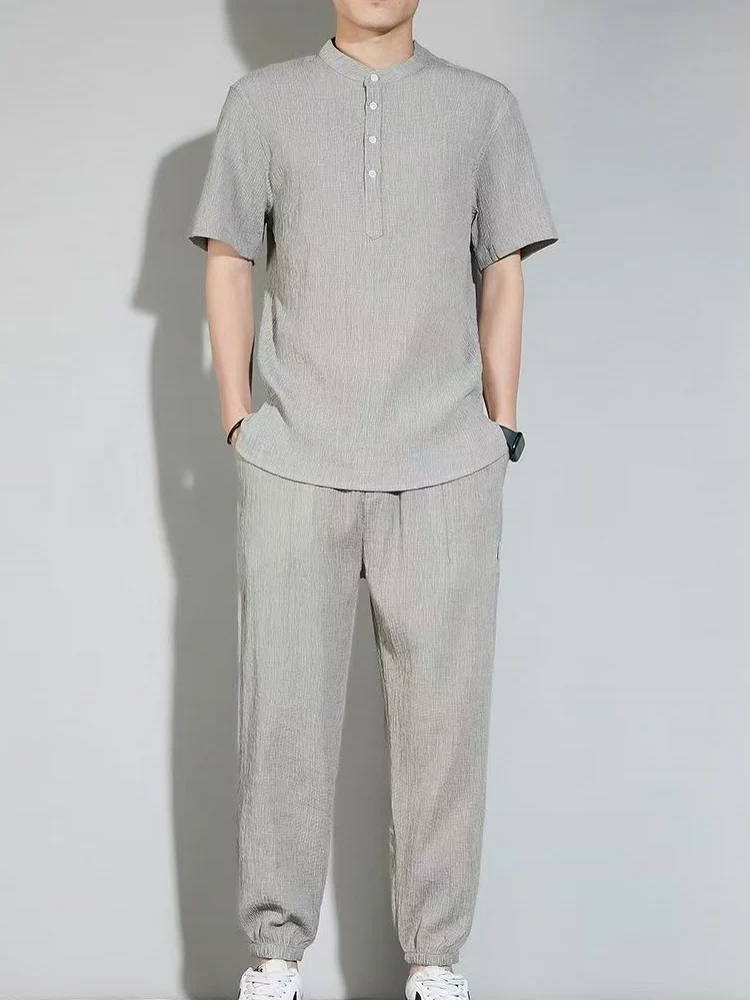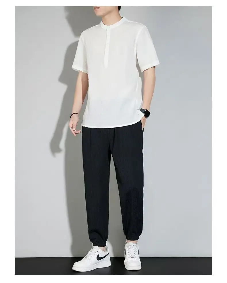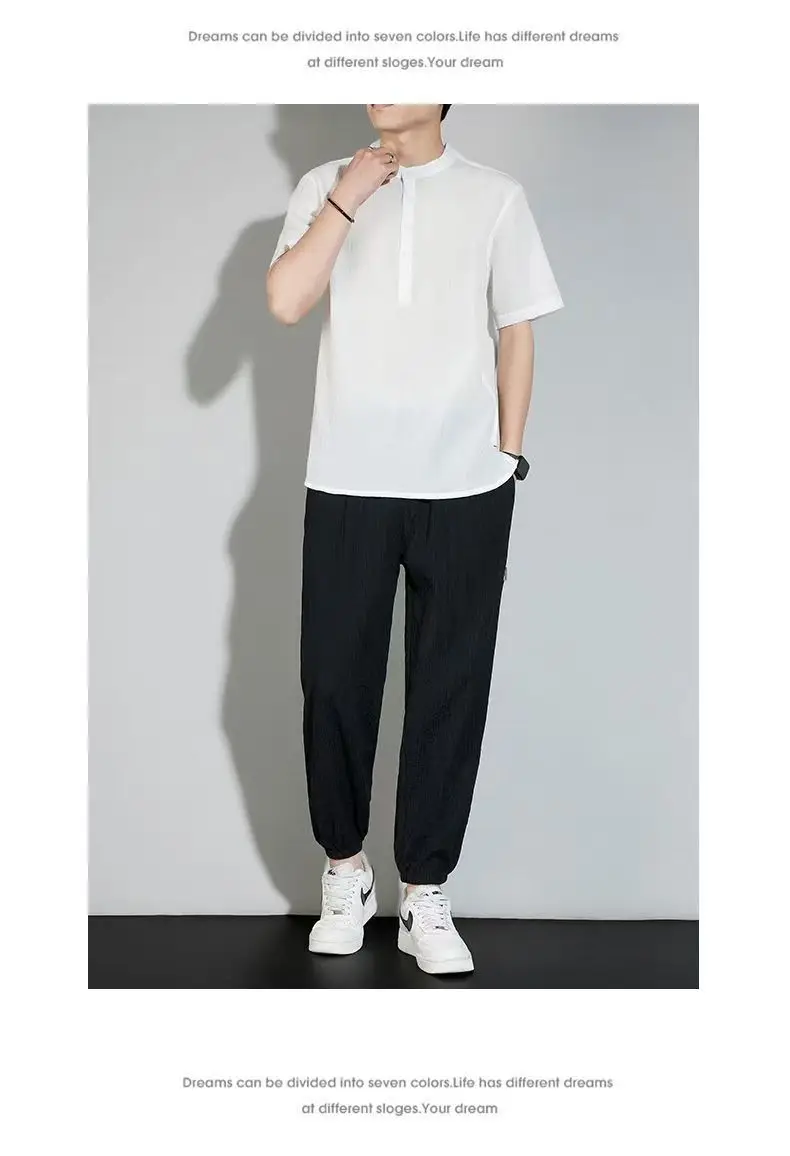 HEARUJOY - Summer New Loose Two Piece Set Men's Short-sleeved T-shirt Pants Korean Wrinkle Sports Casual Suit Trend Men Clothes