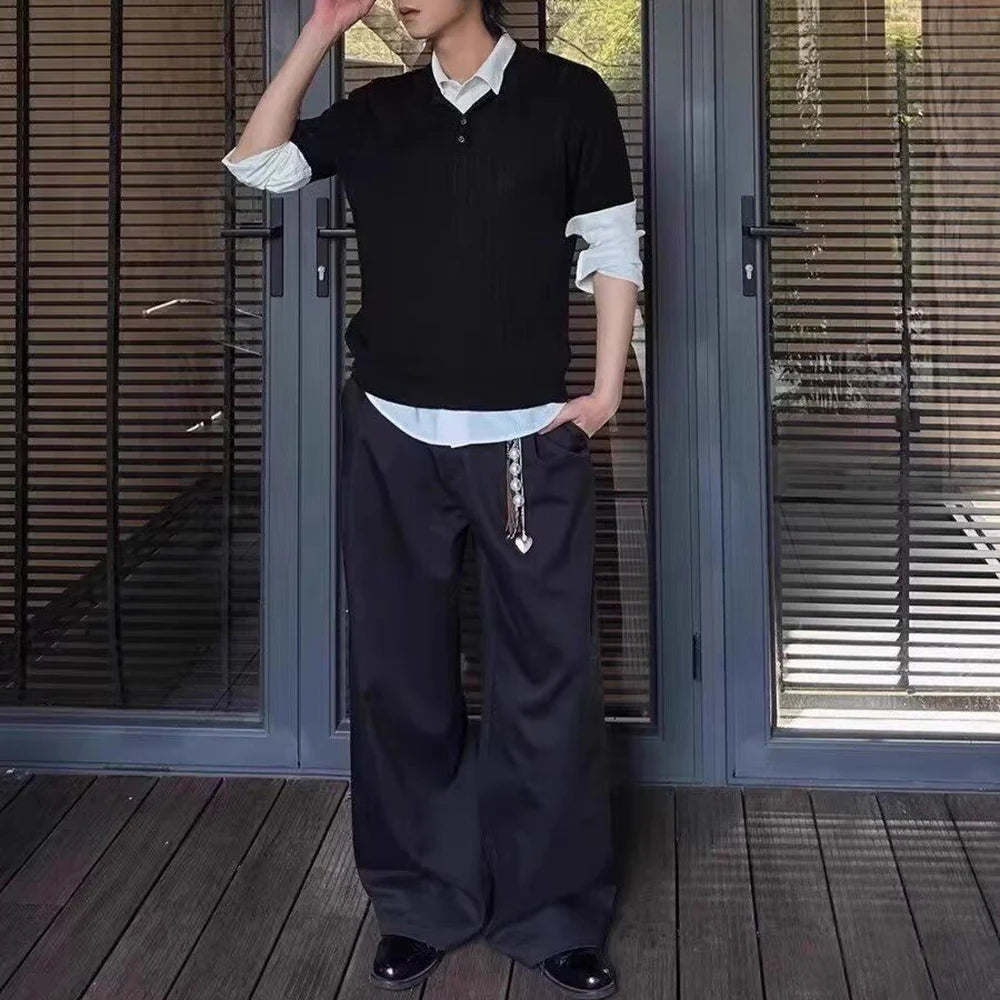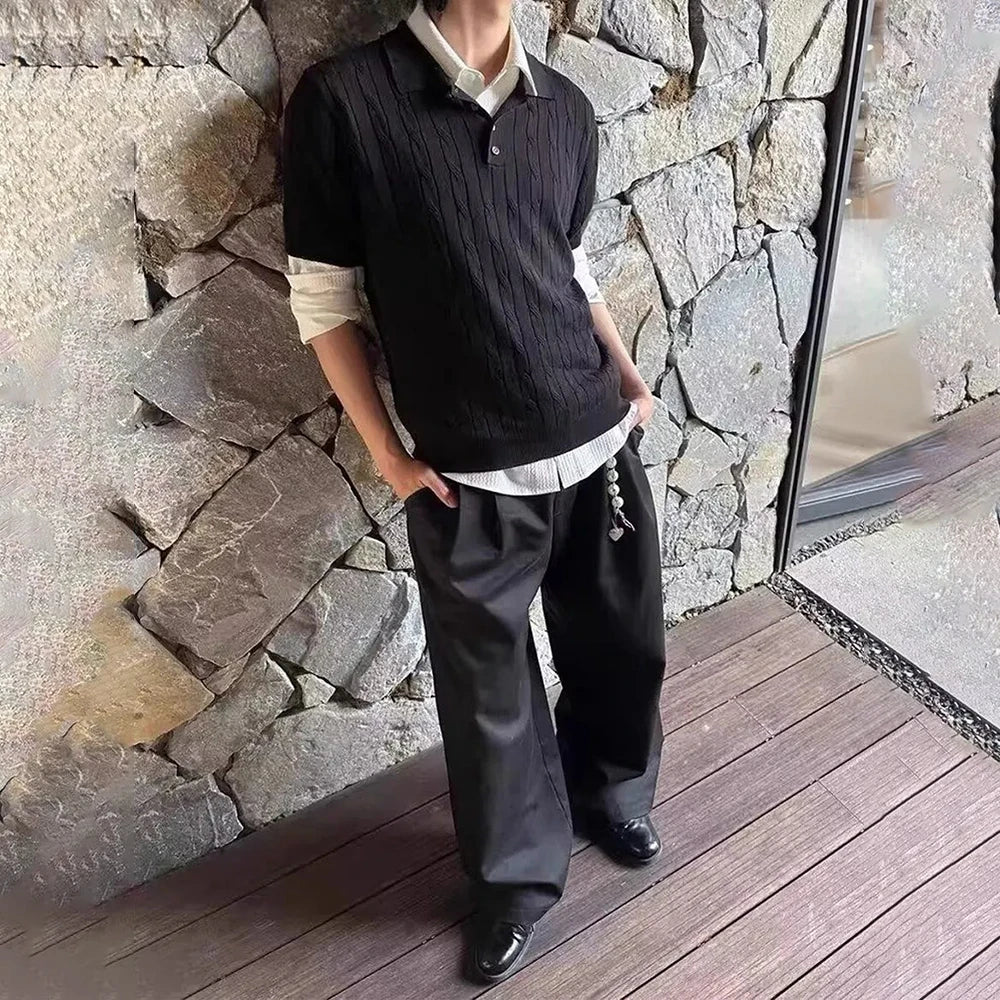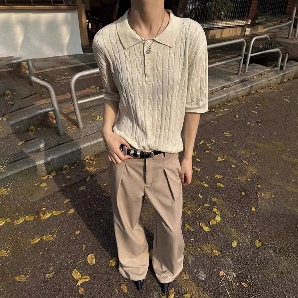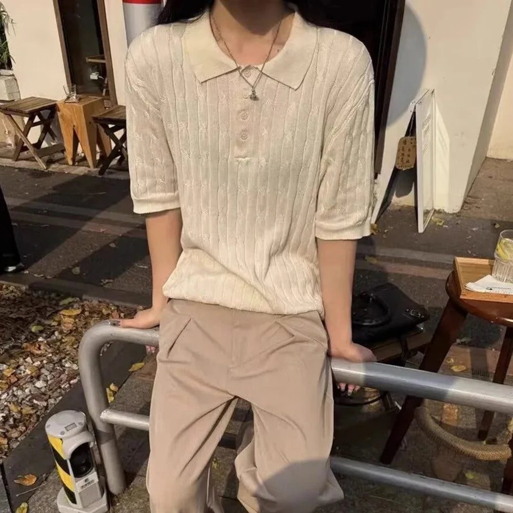 HEARUJOY - Summer New Men's Knitted Short-Sleeved Polo Shirt American Retro Fashion Trend Casual Simple Loose Breathable Niche Men's Tops