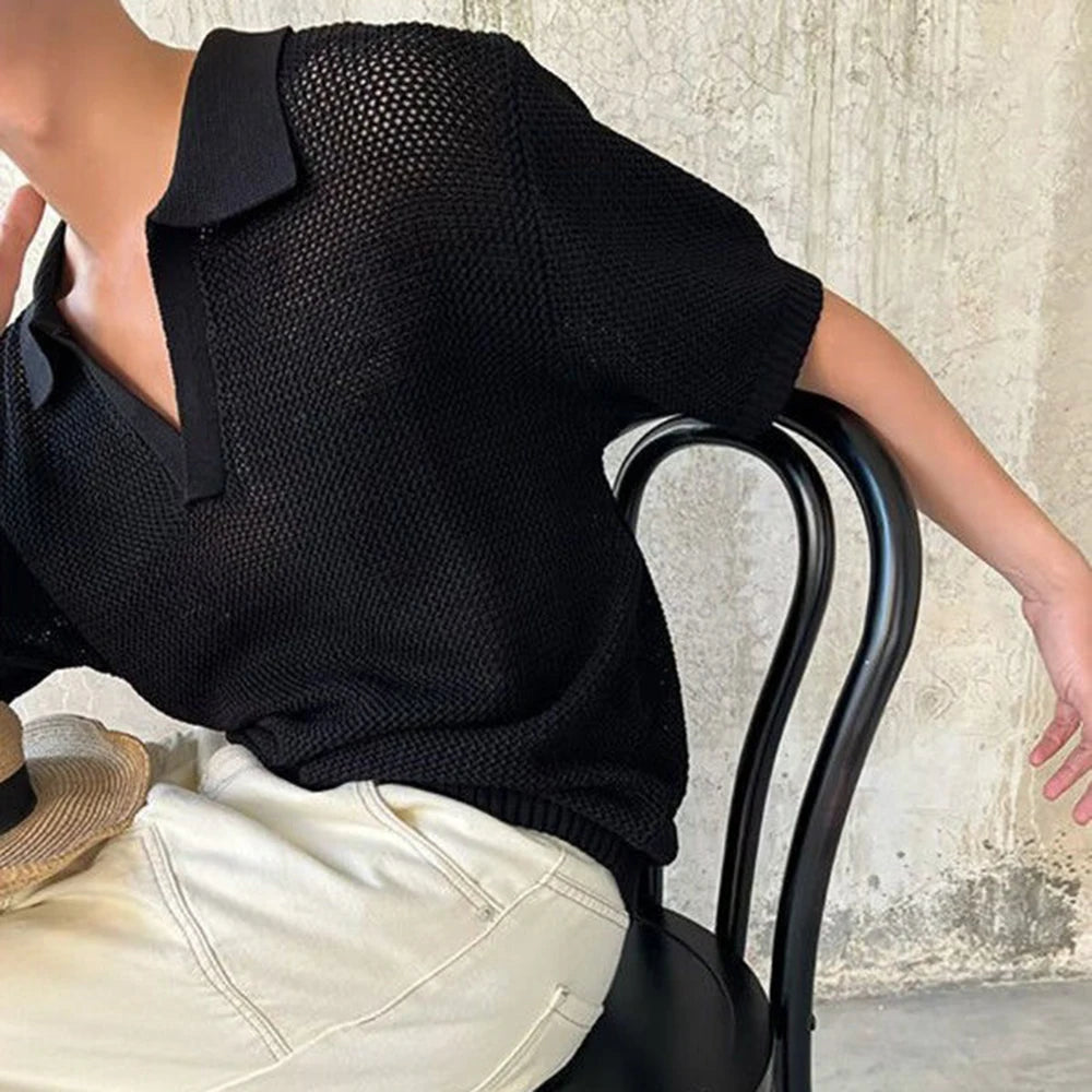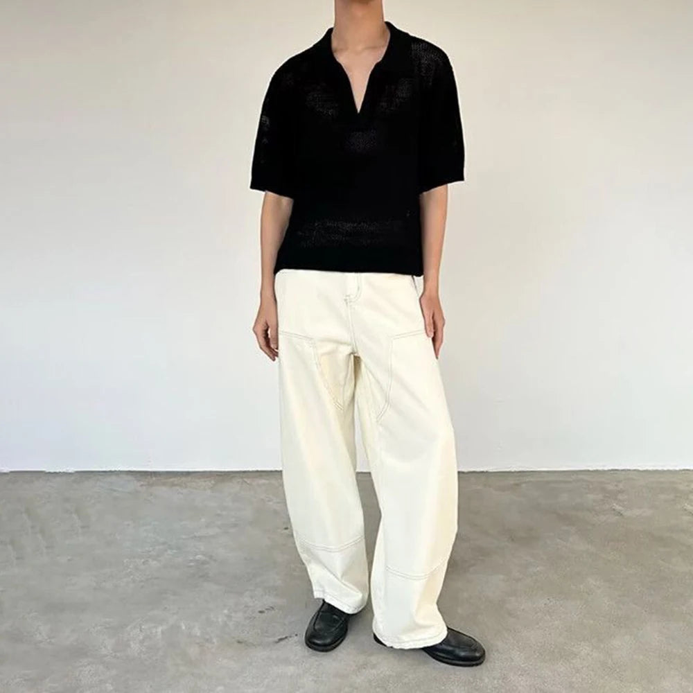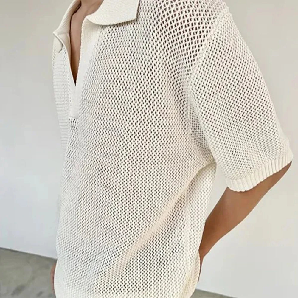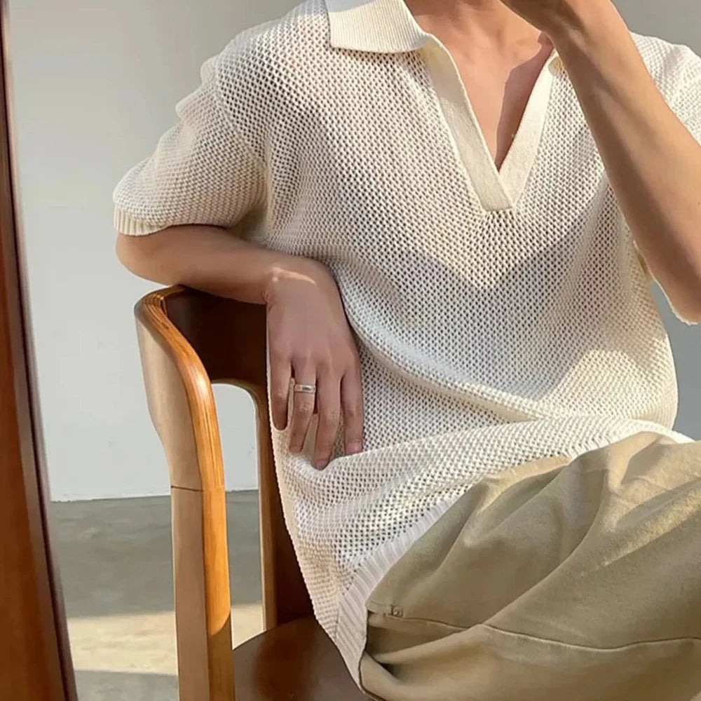 HEARUJOY - Summer New Men's Solid Color Hollow Short Sleeve T-shirt American Retro Fashion Trend Loose Simple Breathable Men's Tops