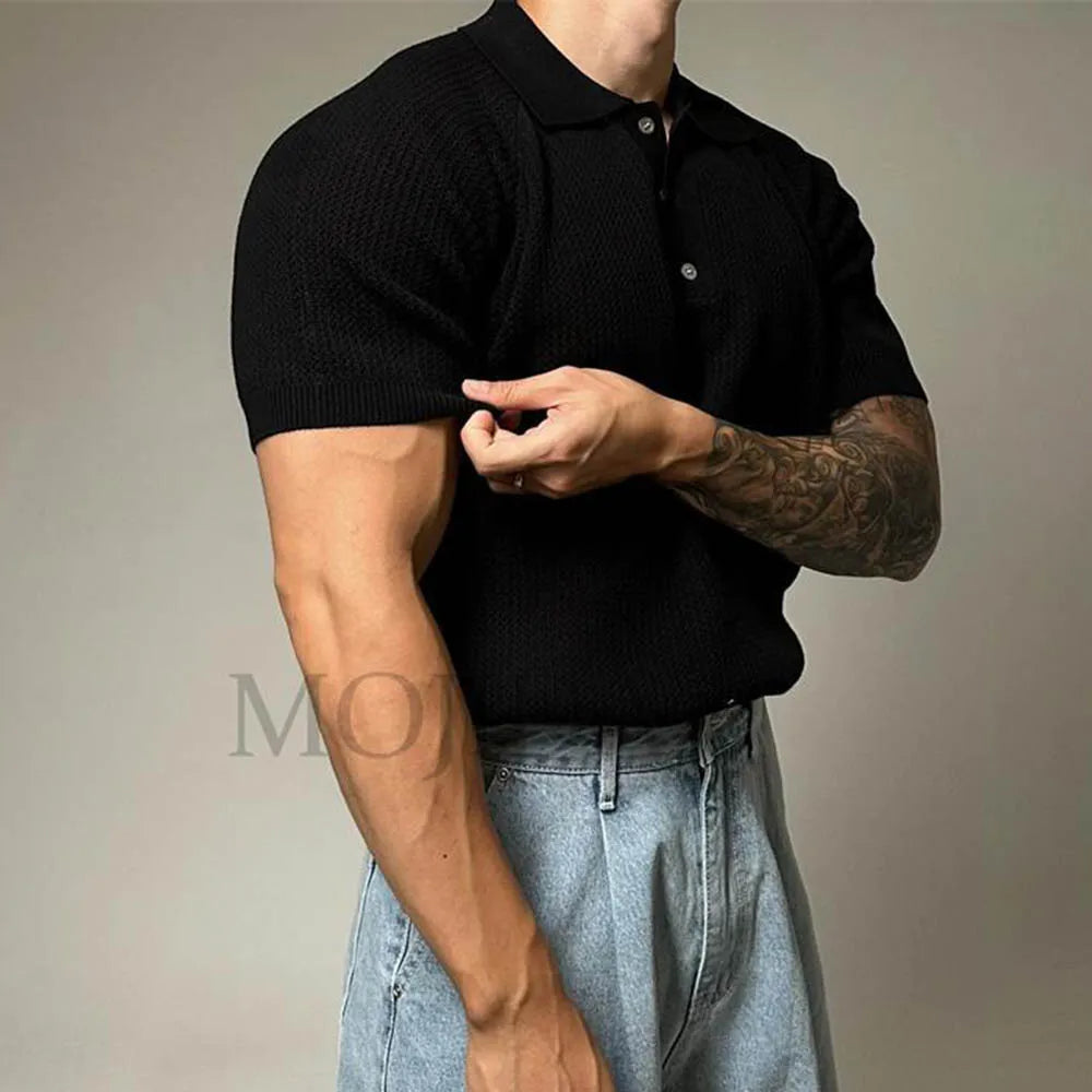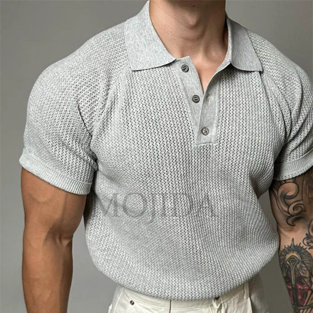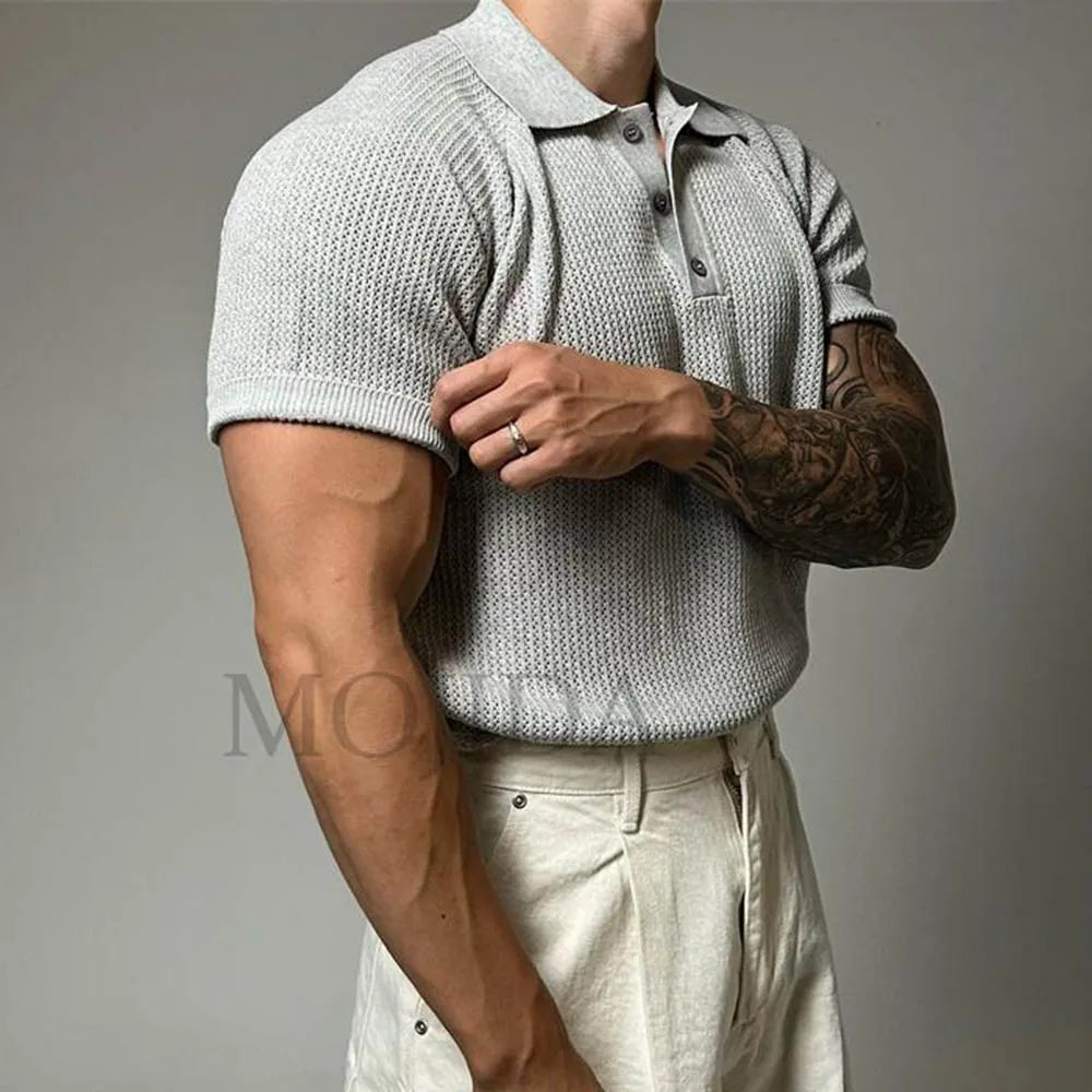 HEARUJOY - Summer New Men's Solid Color Knitted Short-Sleeved T-Shirt American Retro Fashion Trend Loose Casual Breathable Men's Tops