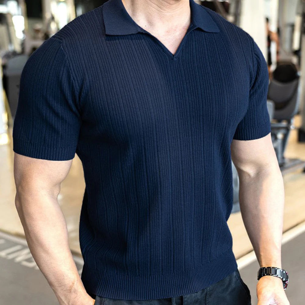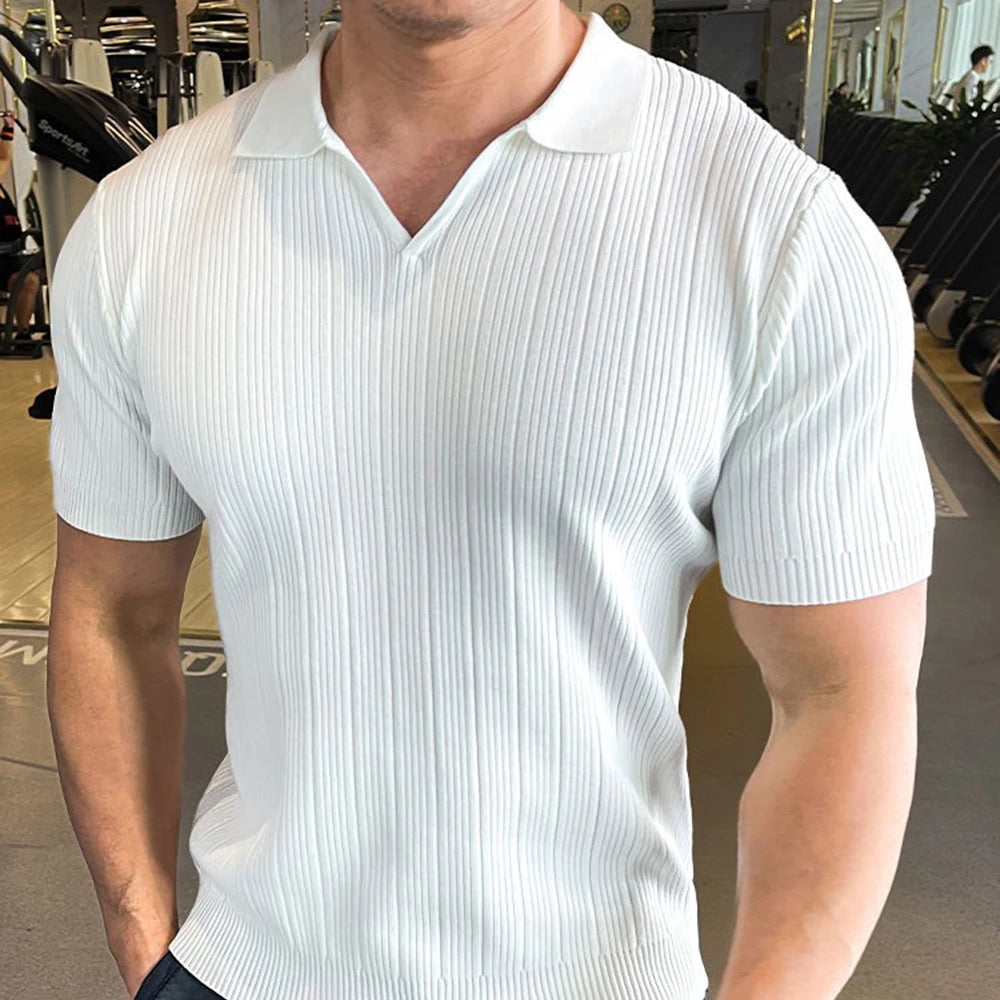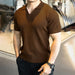 HEARUJOY - Summer New Men's Solid Color Knitted Sweater Short-Sleeved T-Shirt Retro Fashion Trend Casual Simple Loose Breathable Men's Tops