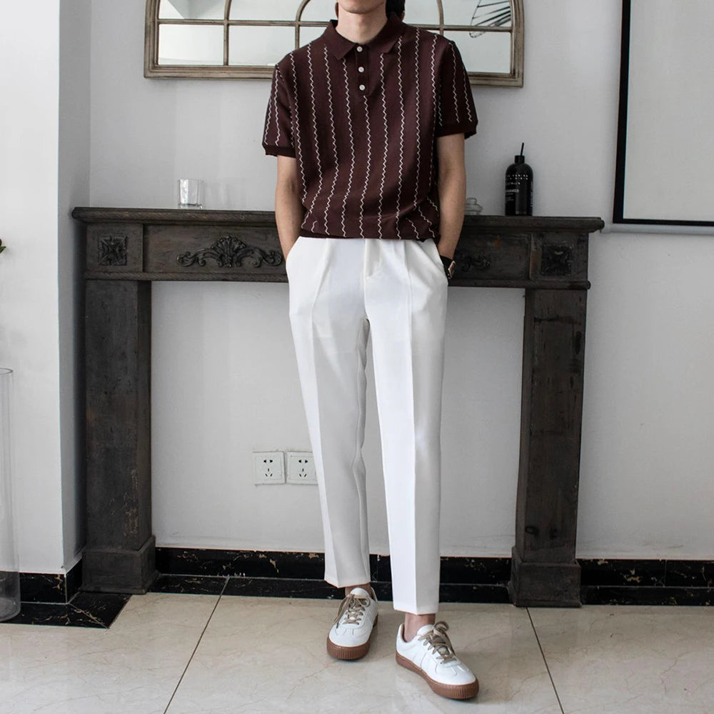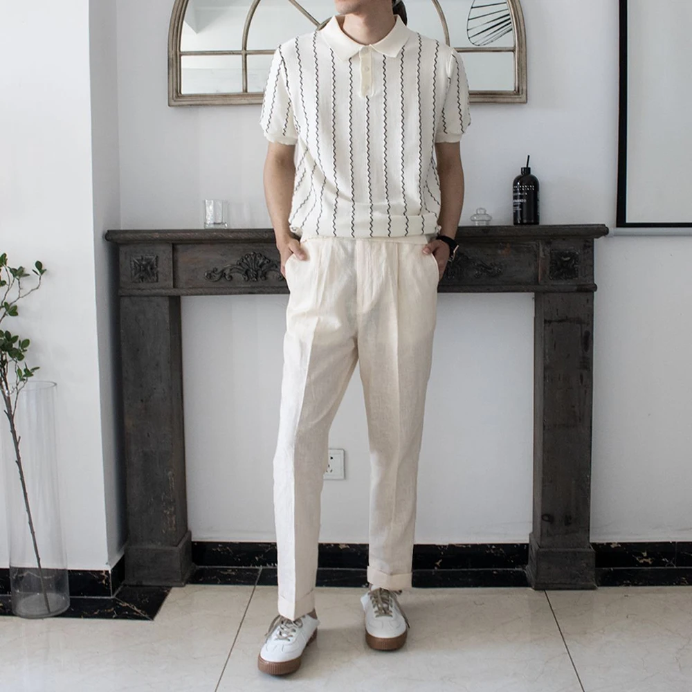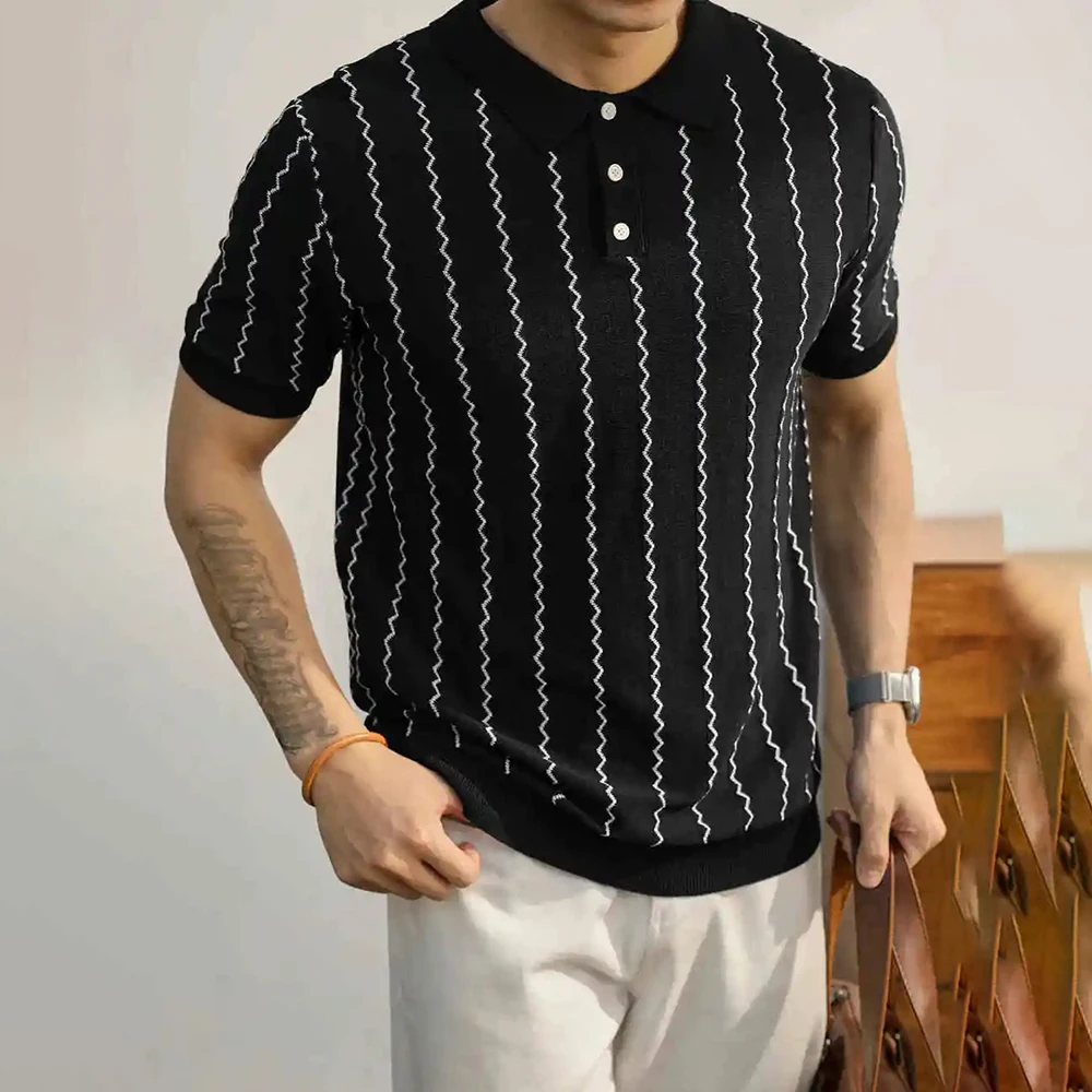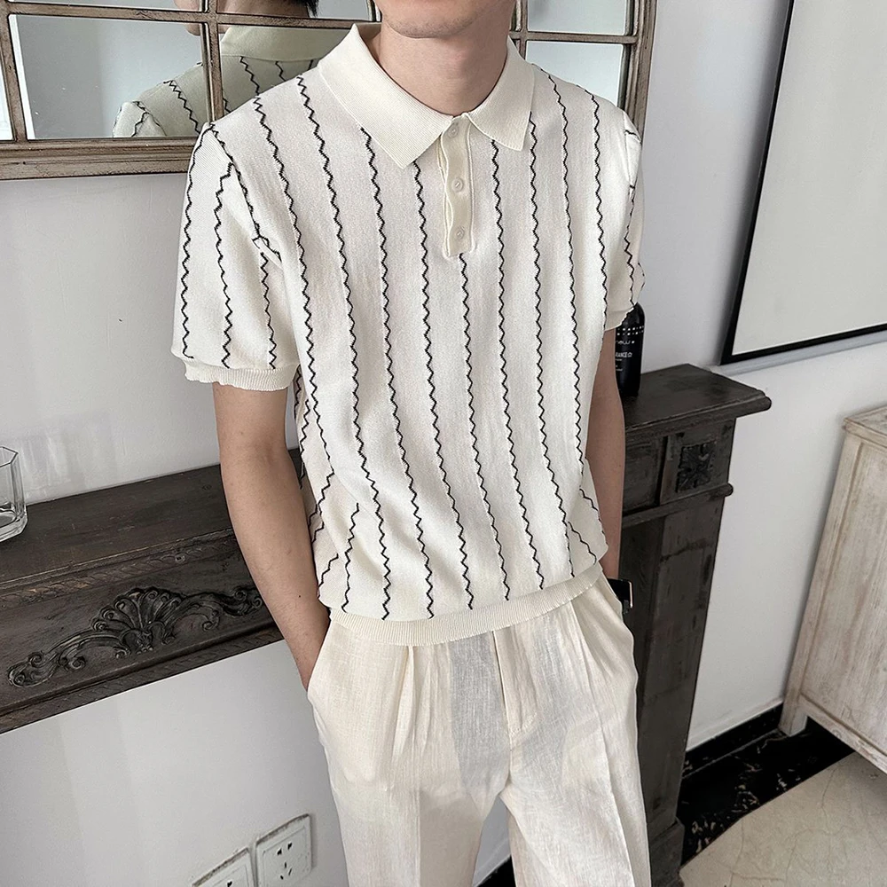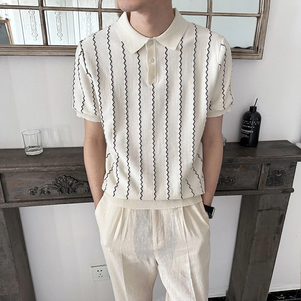HEARUJOY - Summer New Men's Striped Knitted Short-Sleeved T-Shirt Retro Fashion Trend Casual Simple Loose Breathable Business Men's Tops