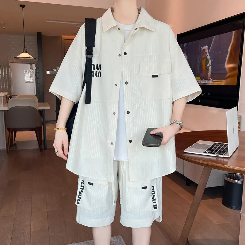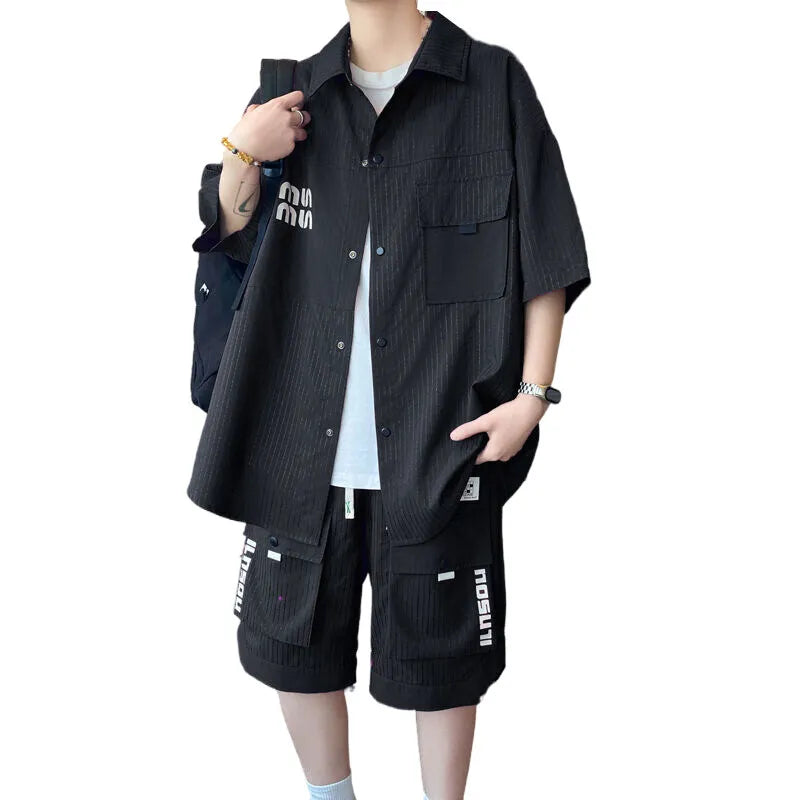 HEARUJOY - Summer Set Men's Casual Single Breasted Short Sleeve Shirt Shorts Loose Fashion High Quality Sweatshirt Suit