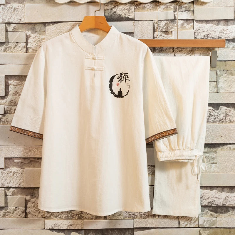 HEARUJOY - Summer Shirt + Trousers Men sets Chinese Style Men Shirt Cotton and Linen Shirts Men's High Quality Casual Shirts Two Piece Suit