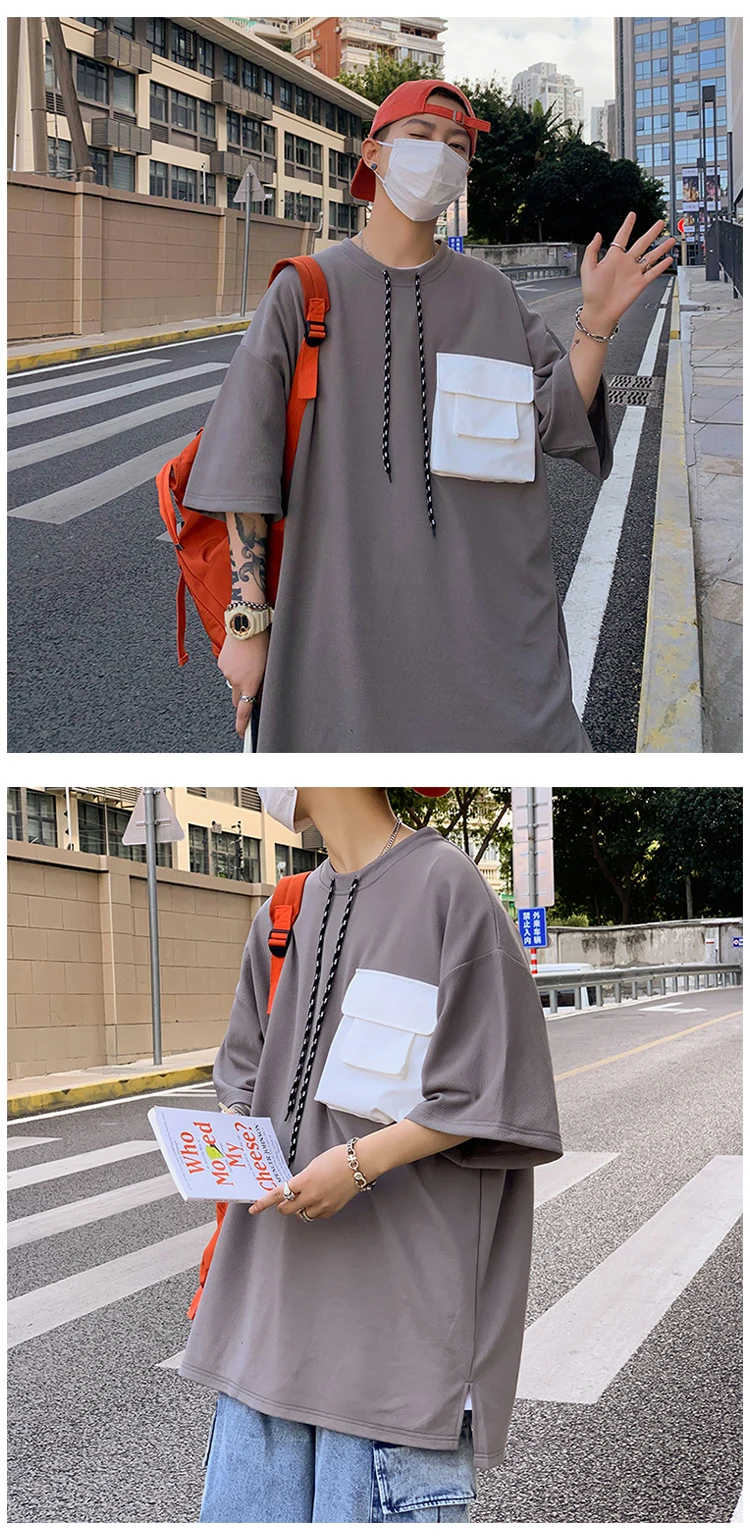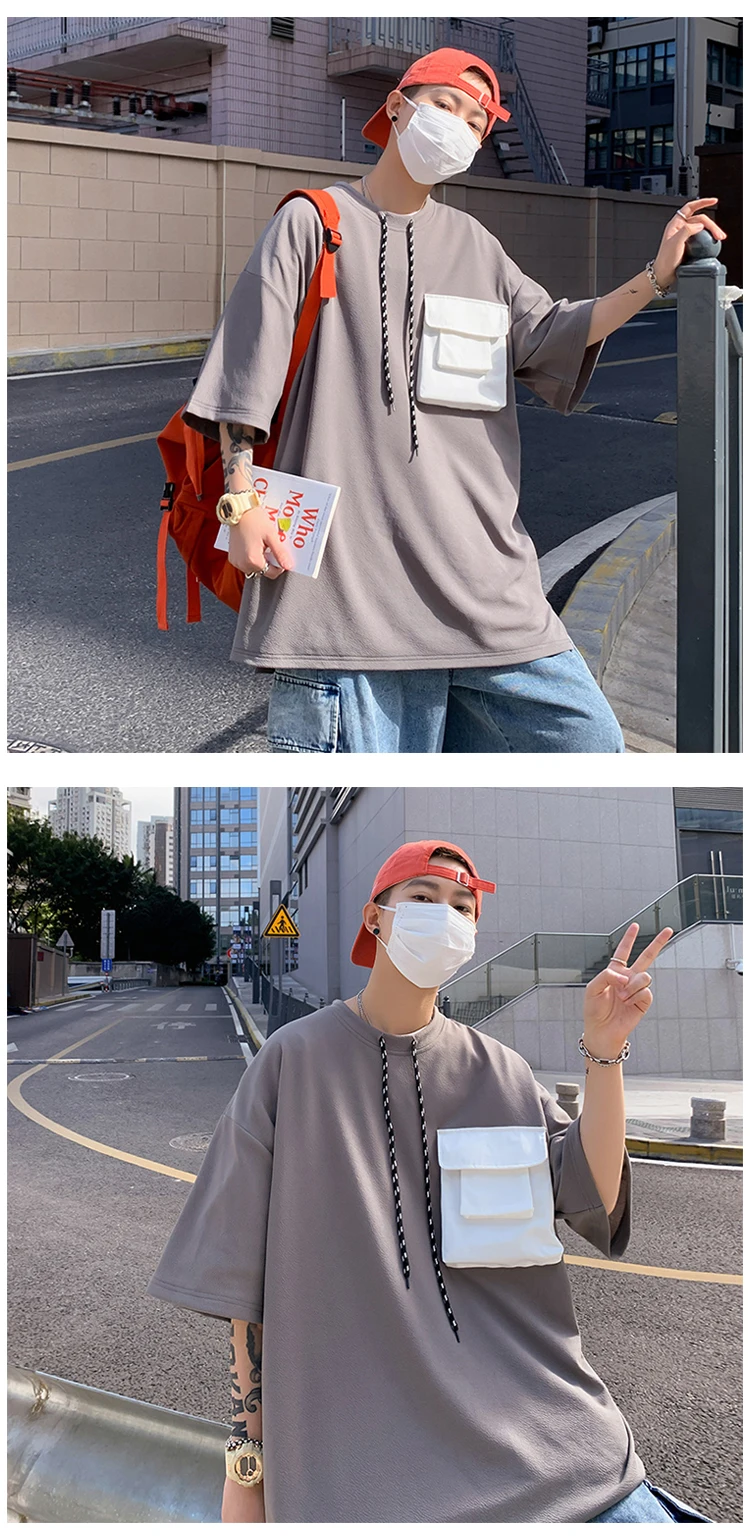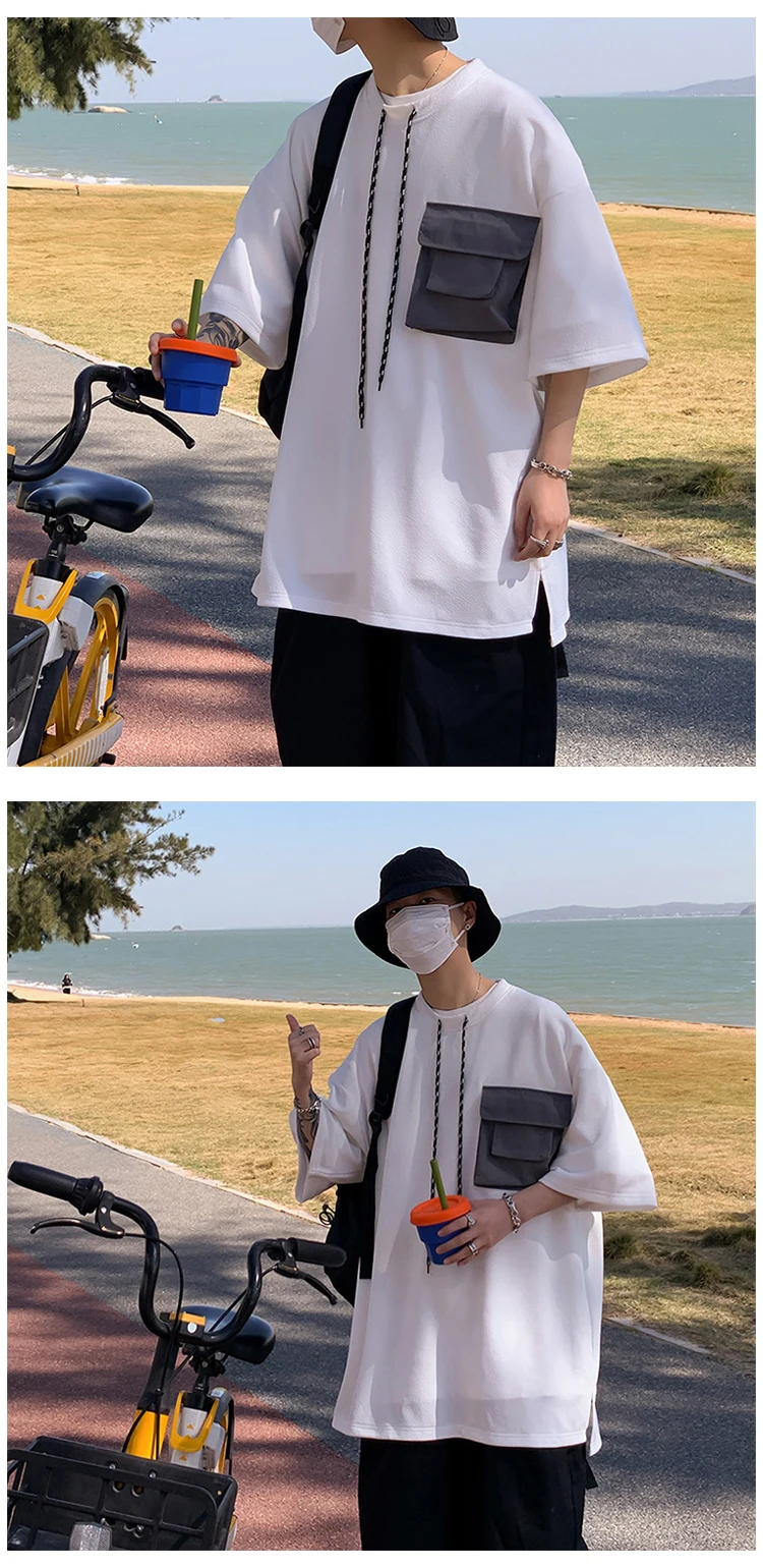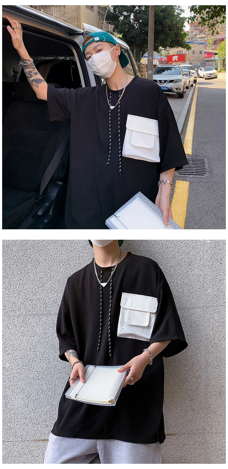 Hearujoy Summer Short Sleeve T-Shirt Men Fashion Pocket Casual T-Shirt Men Streetwear Loose Hip Hop O-Neck TShirt Mens Tops M-5XL