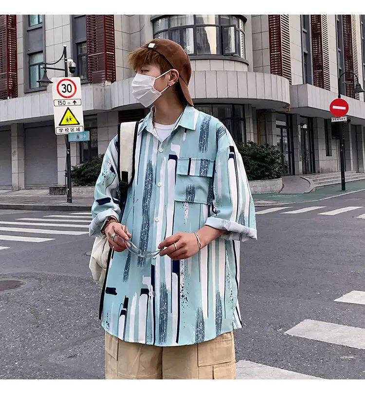 HEARUJOY - Summer Short Sleeved Shirt Men Fashion Printed Casual Shirt Men Streetwear Hip-hop Loose Striped Shirt Mens Hawaiian Shirts
