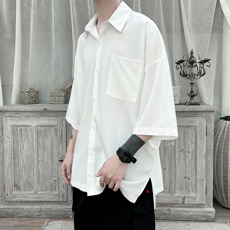 HEARUJOY - Summer Short Sleeved Shirt Men Fashion Society Mens Dress Shirt Korean Loose Casual Shirt Mens Oversized Ice Silk Shirts M-3XL