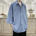 HEARUJOY - Summer Short Sleeved Shirt Men Oversized Society Mens Black Dress Shirt Korean Loose Ice Silk Shirt Mens Office Formal Shirts