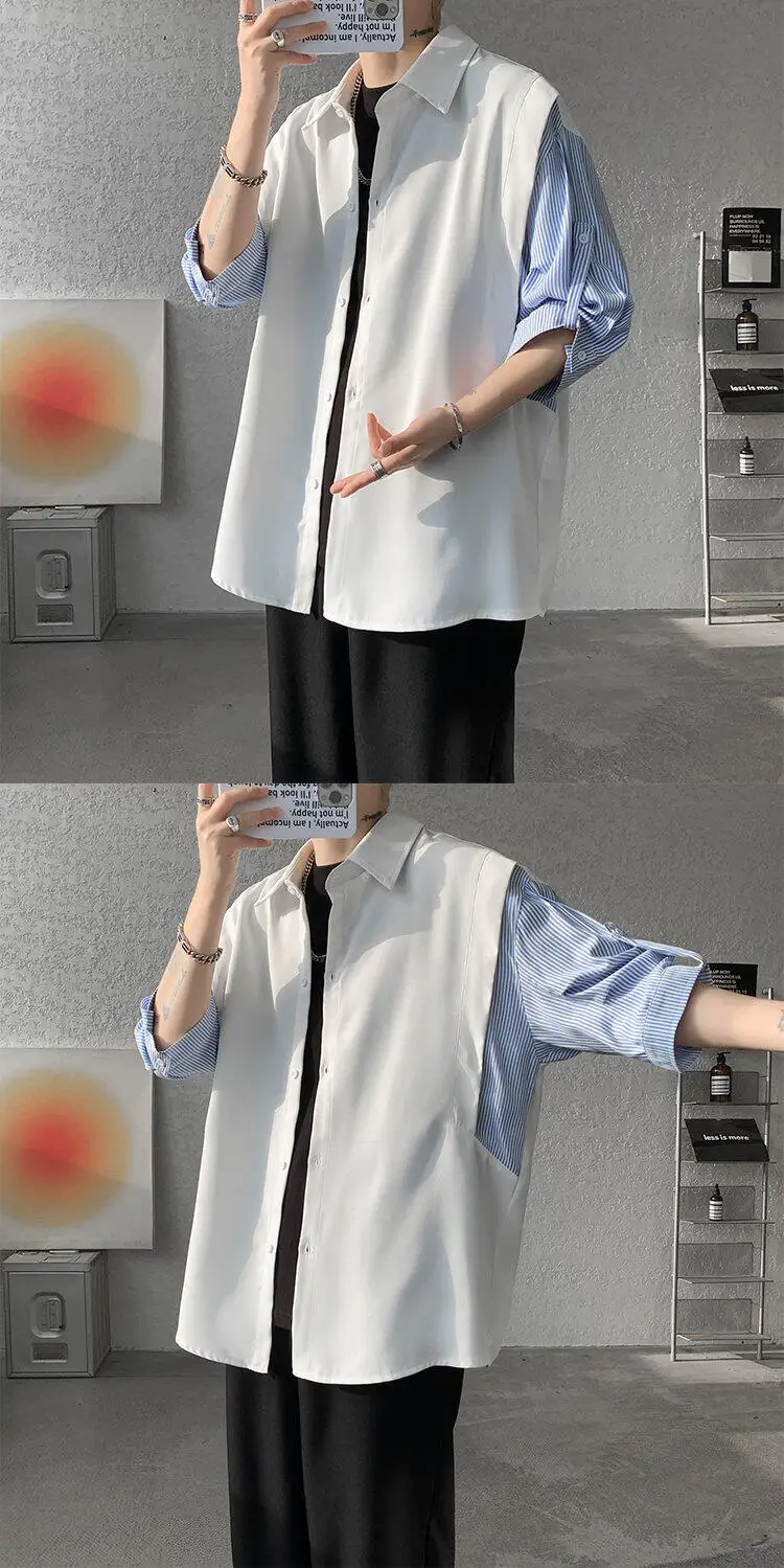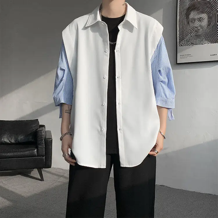 HEARUJOY - Summer Short Sleeved Shirt Men Oversized Society Mens Black Dress Shirts Korean Loose Casual White Shirt Mens Striped Shirt