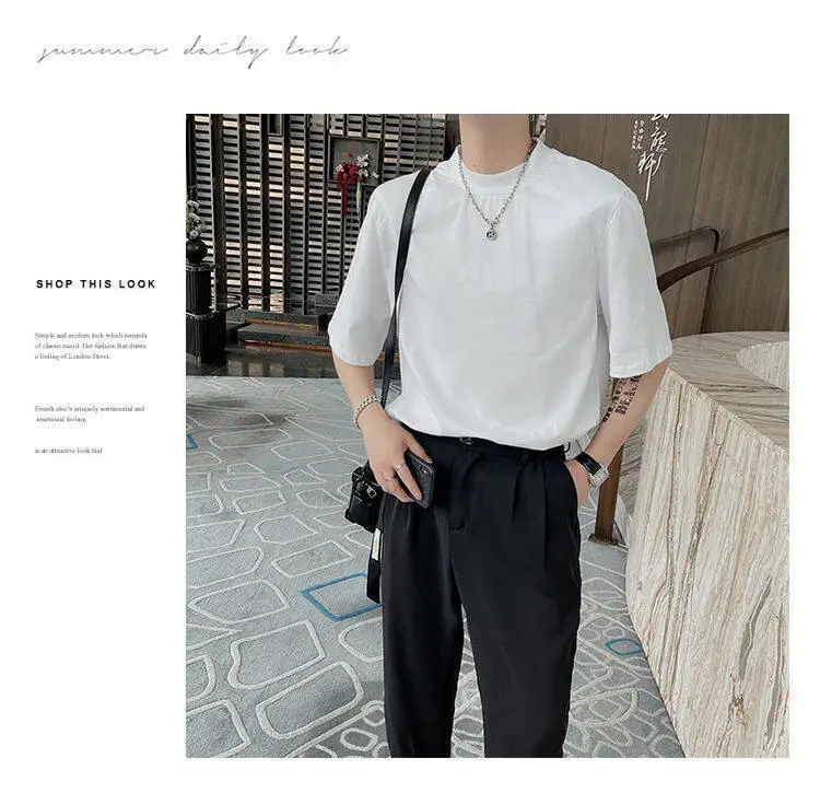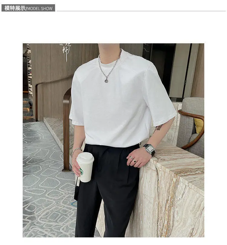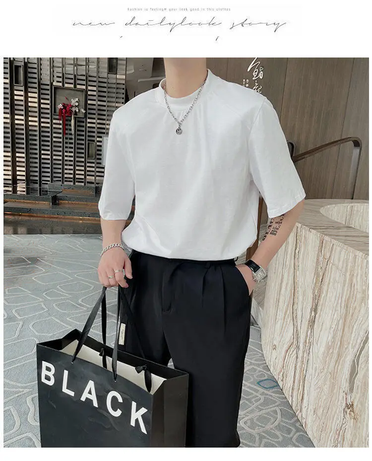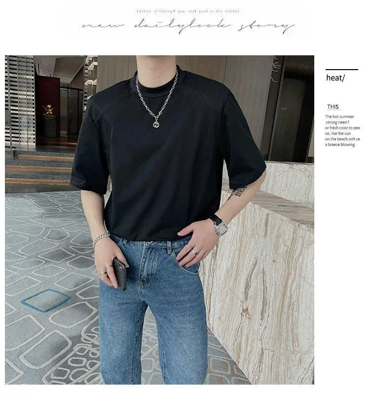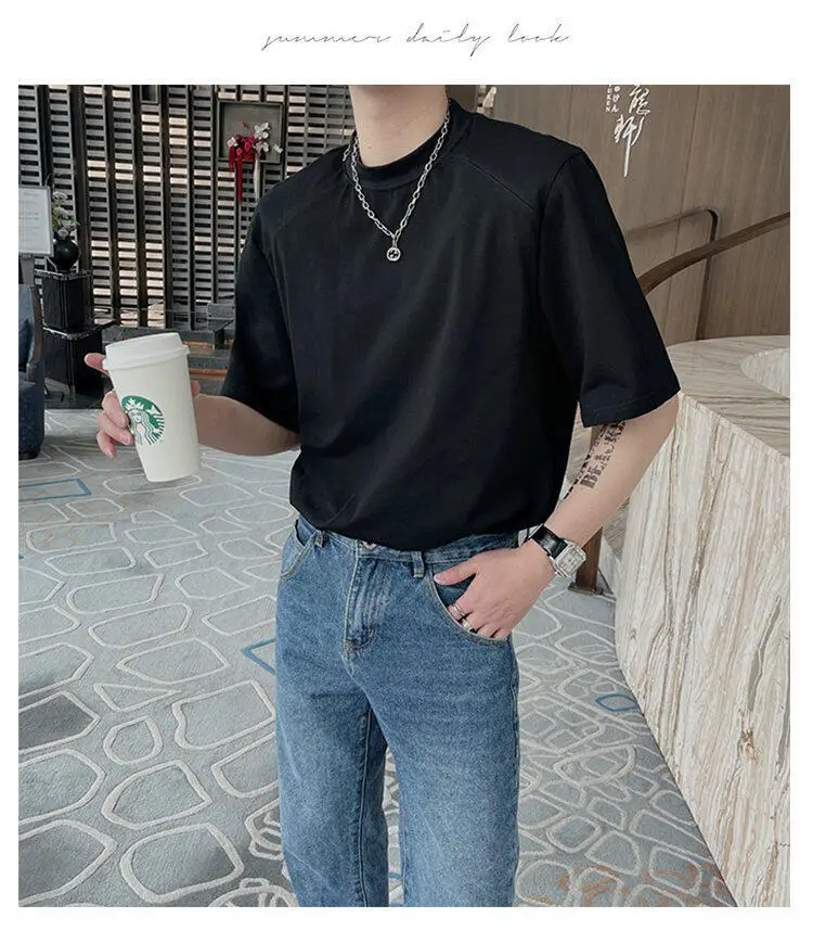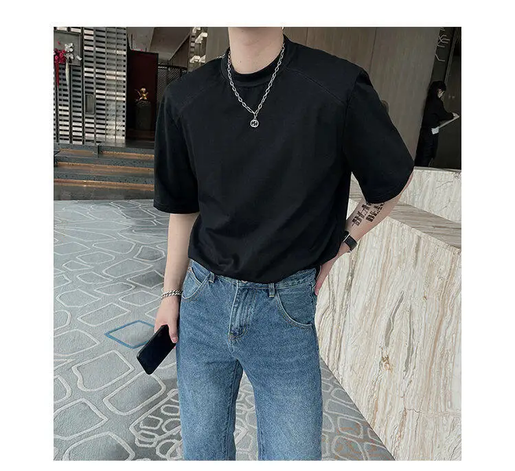 HEARUJOY - Summer Short Sleeved T-shirt Men Fashion Round Neck Black White T Shirt Men Korean Loose Shoulder Pad Tshirt Mens Top M-2XL