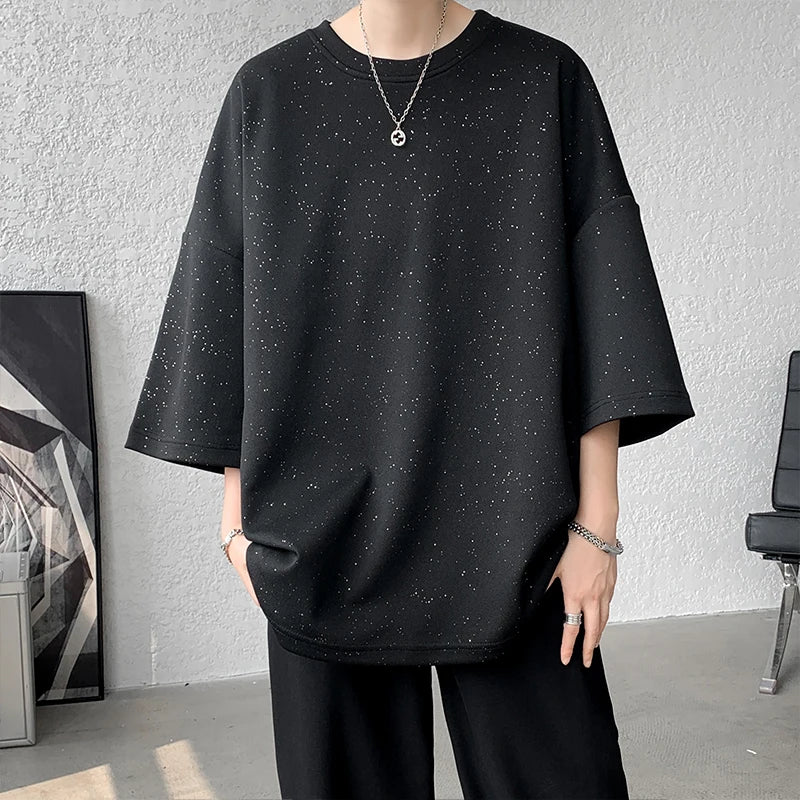 Hearujoy Summer Short Sleeved T-shirt Men Oversized Black White Casual T Shirt Men Streetwear Hip-hop Loose Shiny T Shirt Mens Top M-3XL