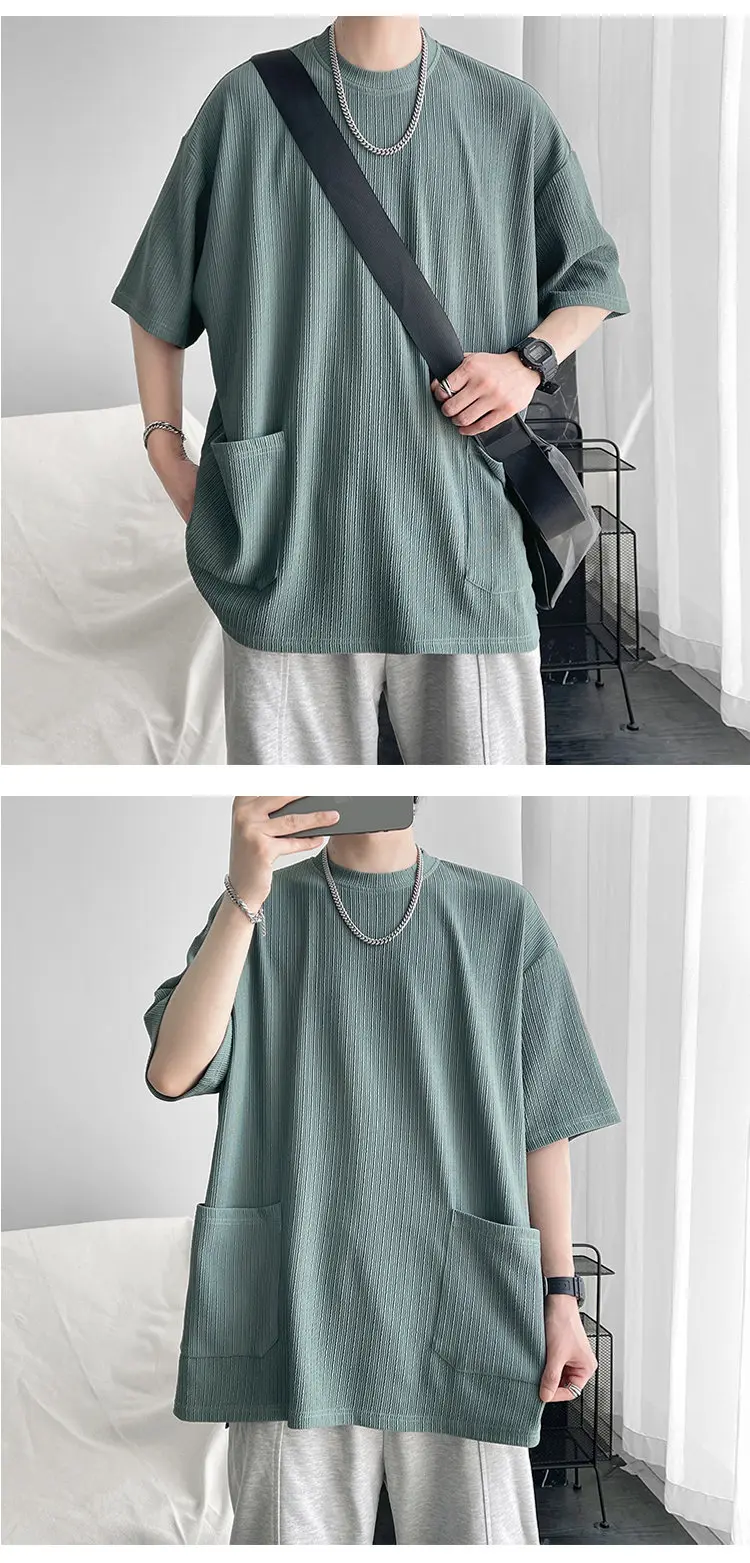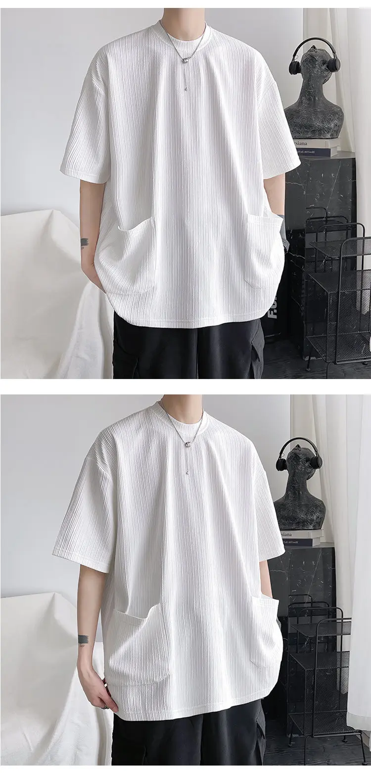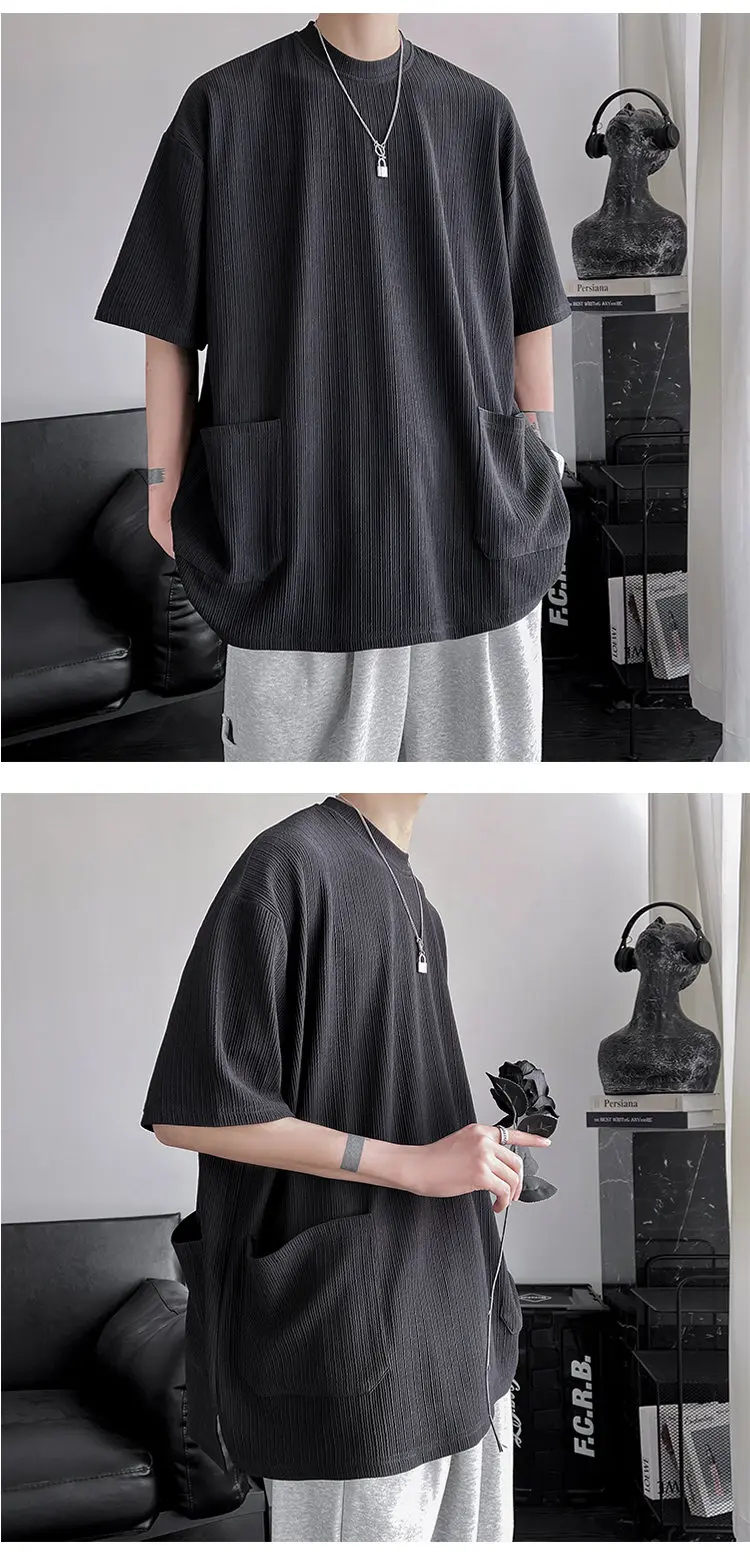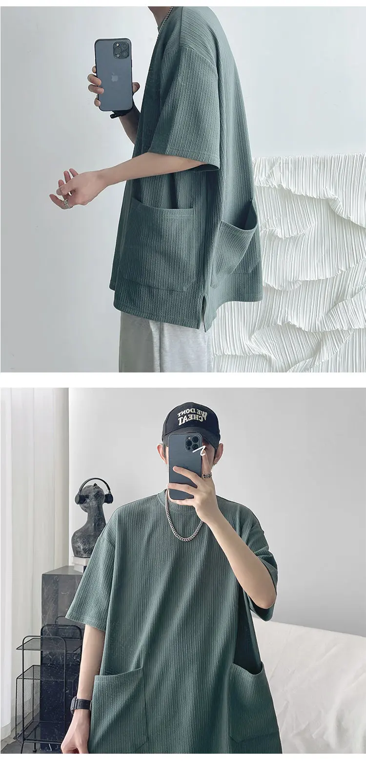 Hearujoy Summer Short Sleeved T-shirt Men Oversized Casual Pocket T Shirt Men Streetwear Hip-hop Loose Pleated T Shirt Mens Top M-3XL
