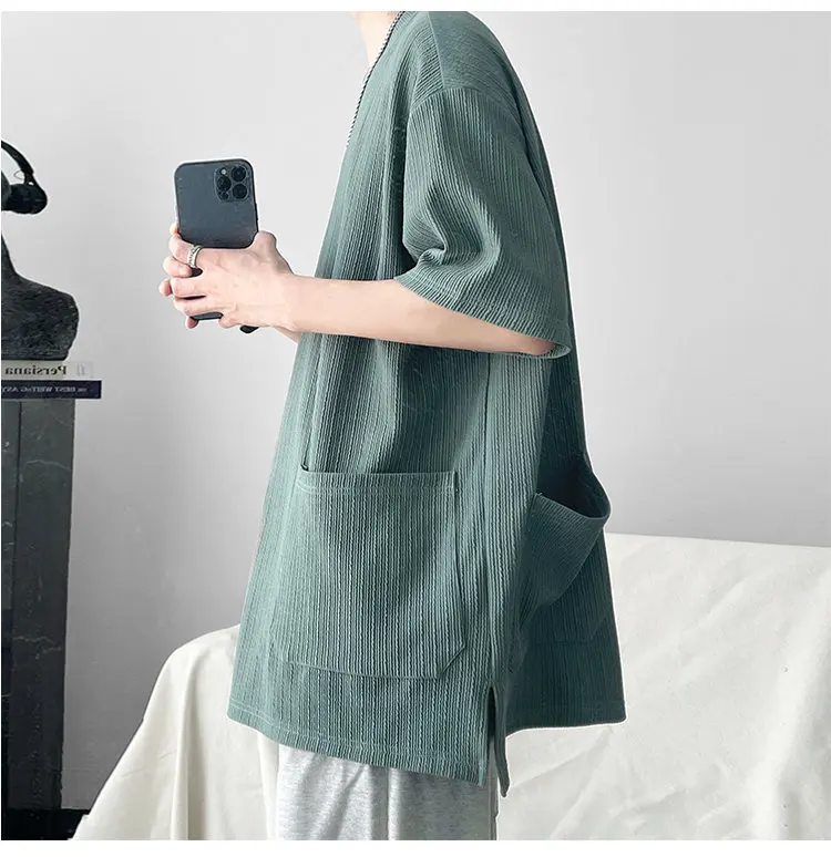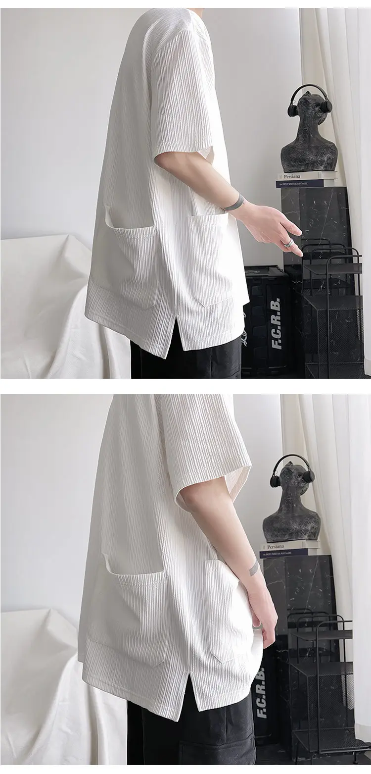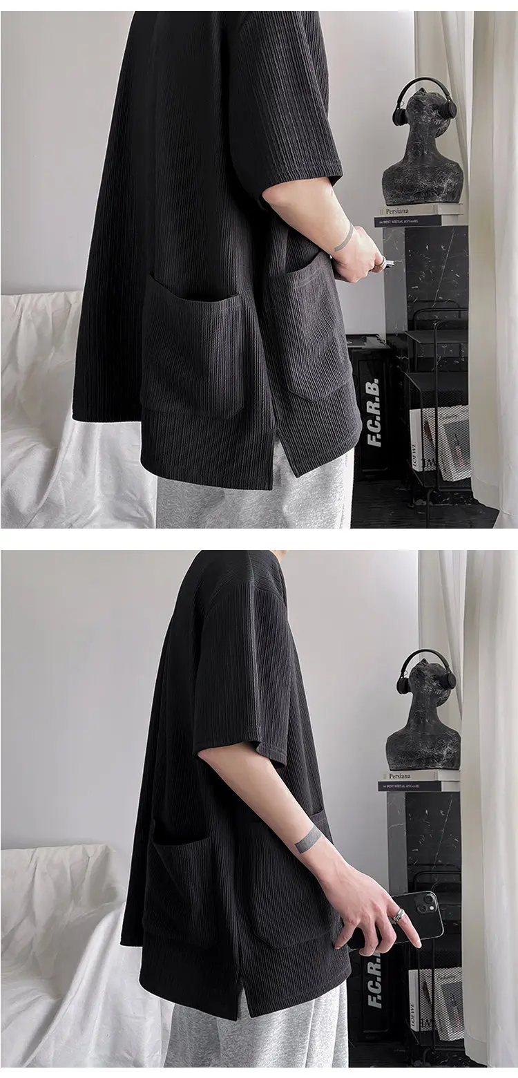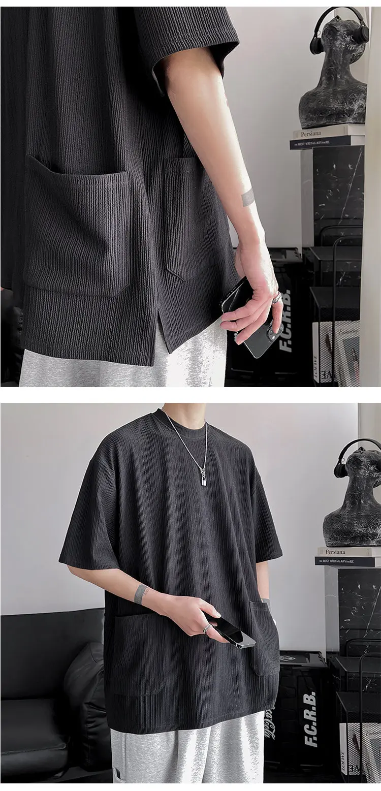Hearujoy Summer Short Sleeved T-shirt Men Oversized Casual Pocket T Shirt Men Streetwear Hip-hop Loose Pleated T Shirt Mens Top M-3XL
