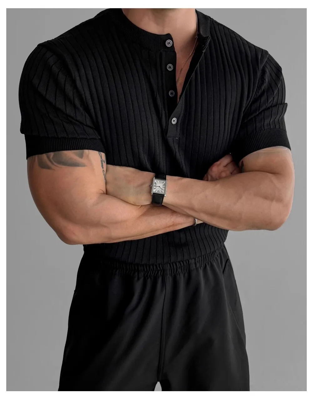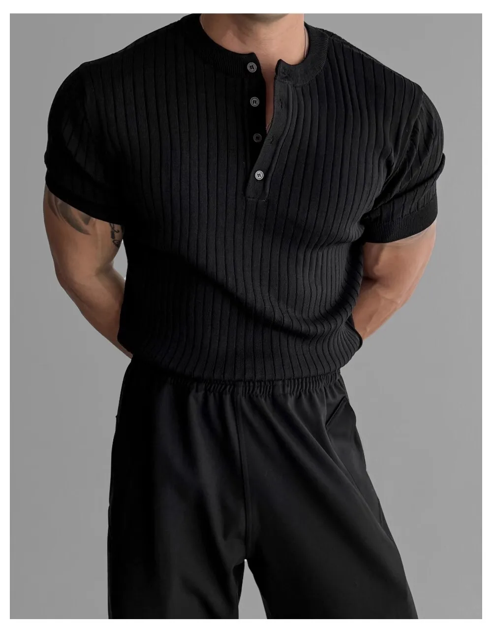 HEARUJOY - Summer Short Sleeved T-shirt Men Slim Fit Fashion Casual White T Shirt Men Streetwear Korean Black Button T Shirt Mens Top M-3XL