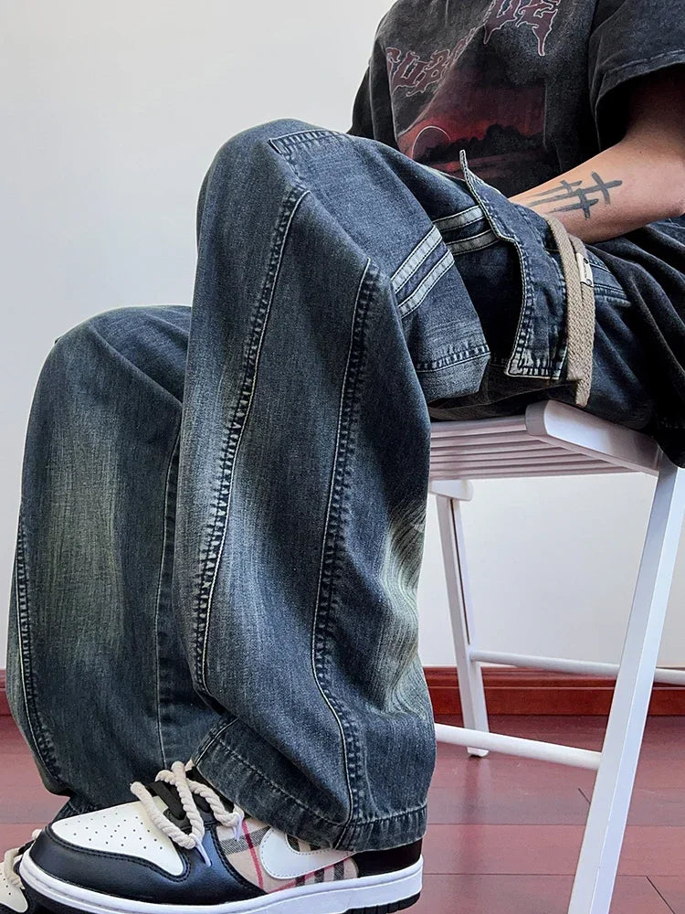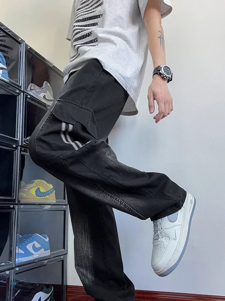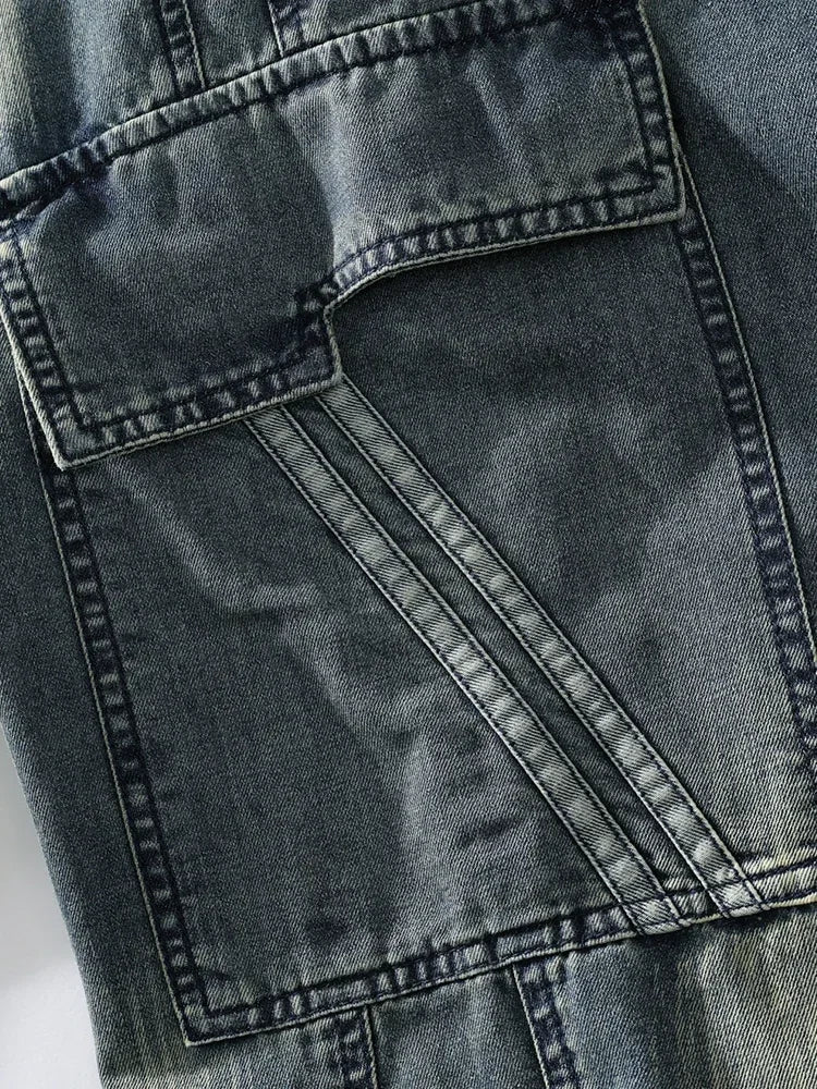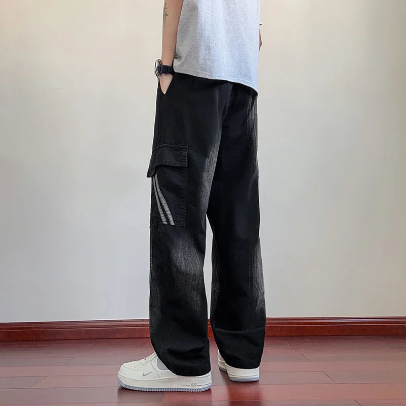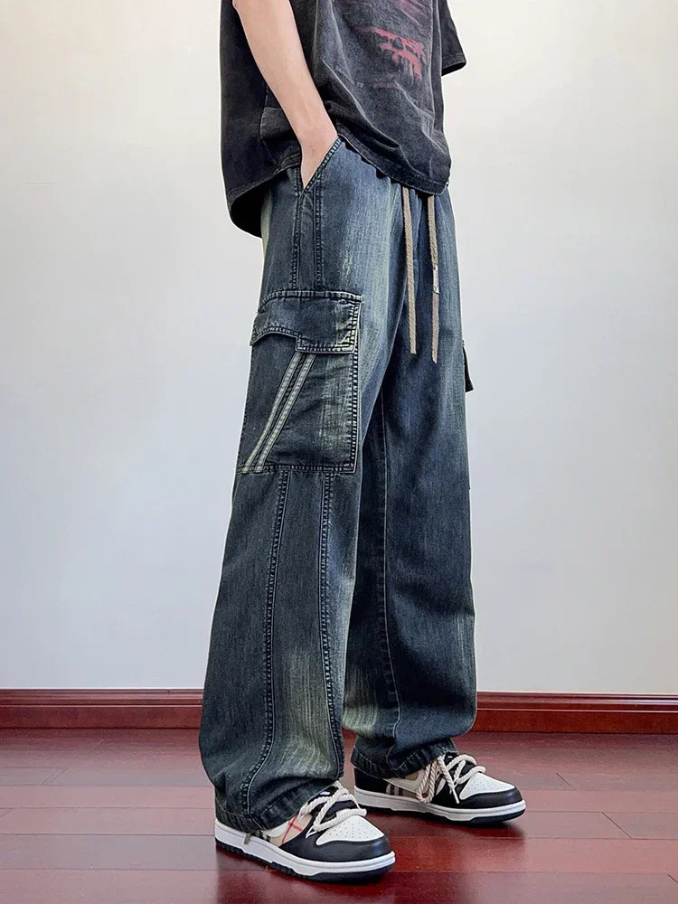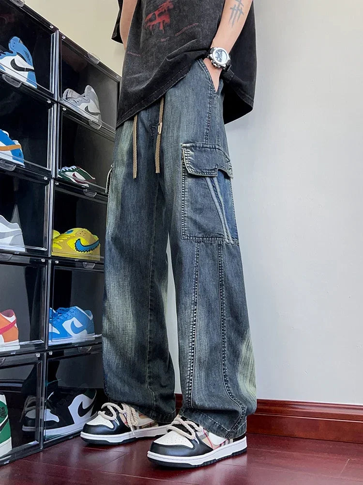 HEARUJOY - Summer Wide Leg Washing Jean Flap Pockets Lightweight Cargo Pants Men Street Trousers Loose Casual Thin Summer Pant Big Size 8xl