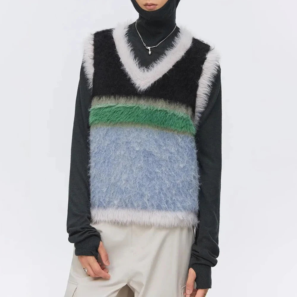 Hearujoy Sweater men's vest Korean version Y2k elegant retro fashion chic autumn and winter streetwear contrast stitching unisex vest