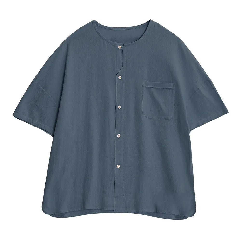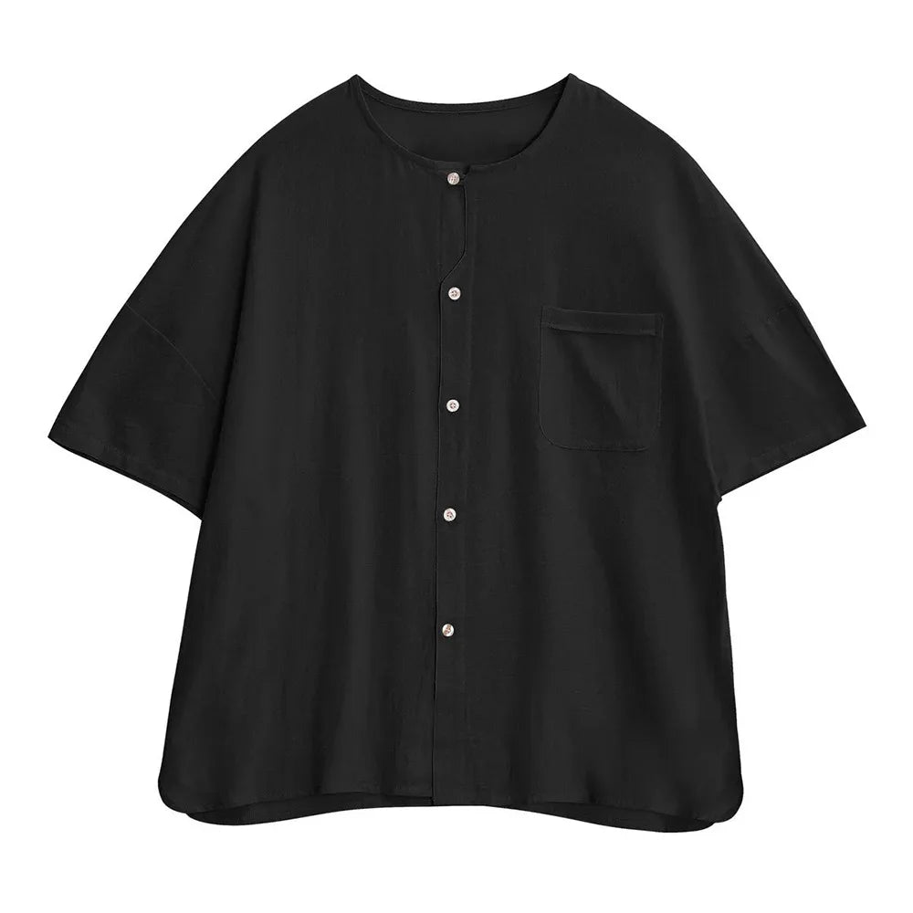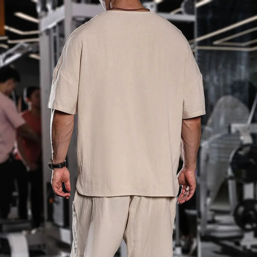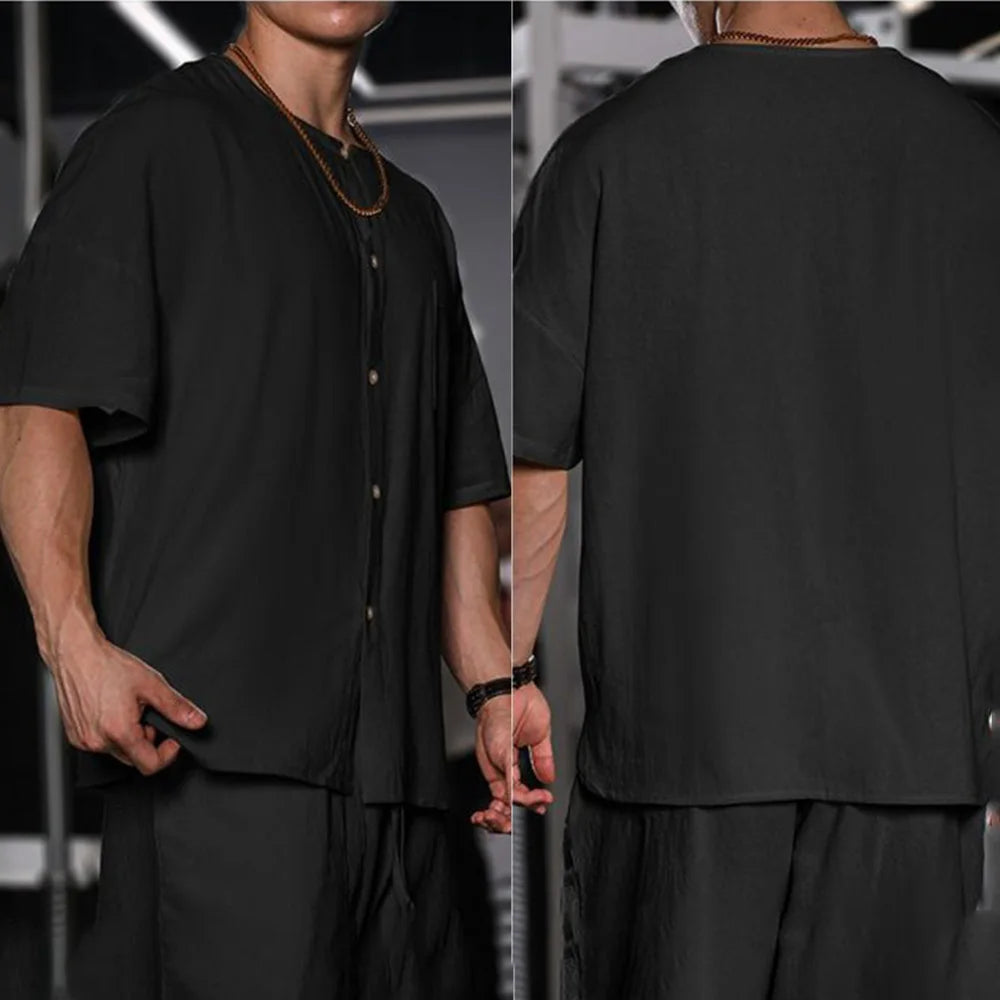 HEARUJOY - T Shirt Mens Gym Daily Simple Pocket Button Five Point Sleeve Shirt Sports Outdoor Breathable Linen Easy Fit Casual Top Summer