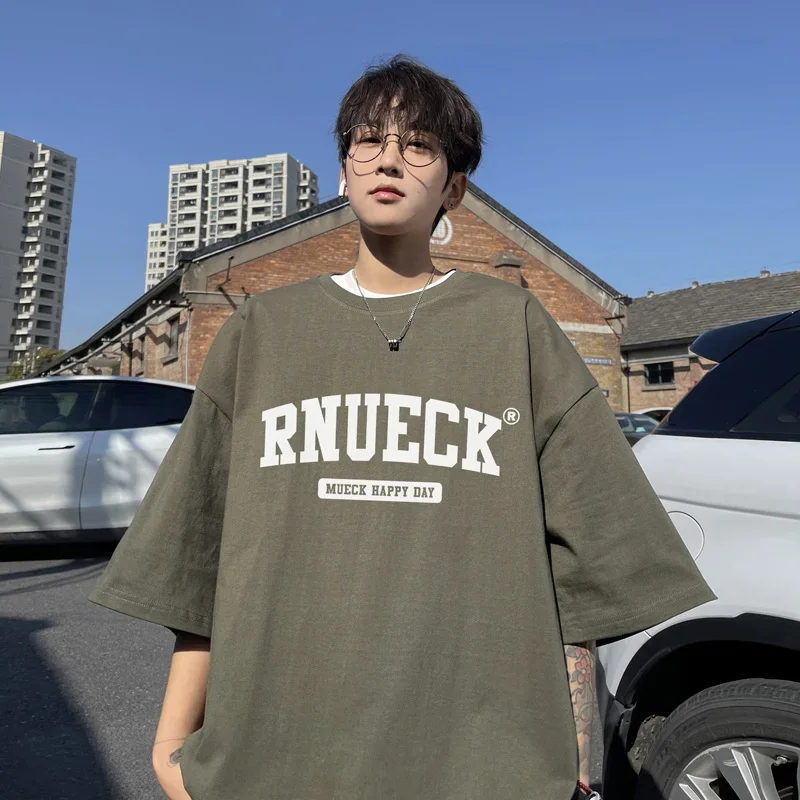 HEARUJOY - T Shirt Oversized Cotton For Men White 5XL Men's Letter Print T-shirts Men Casual Wear Summer Tee Shirts Big Size