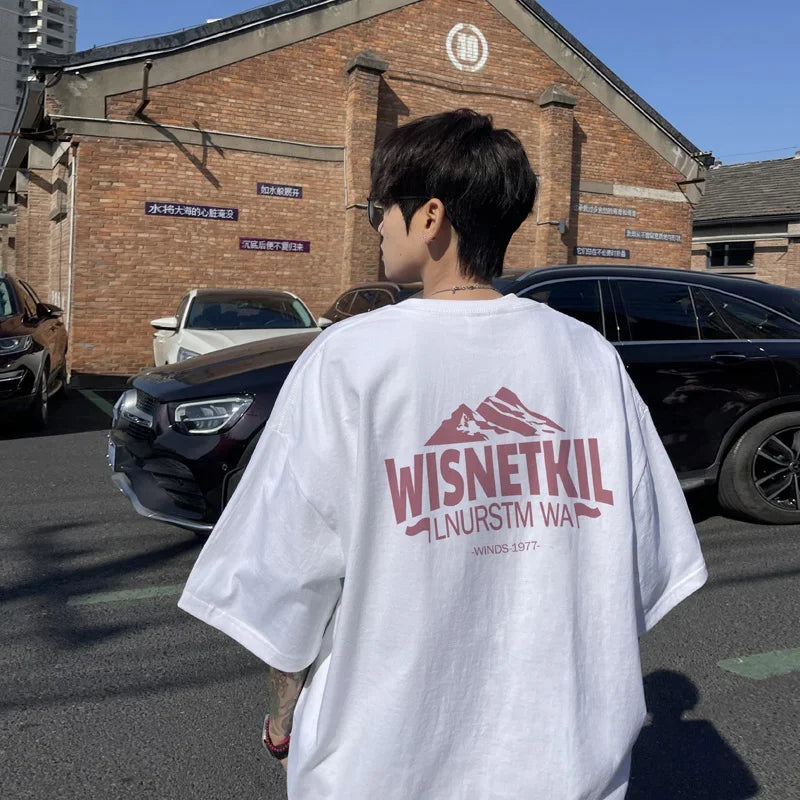 HEARUJOY - T Shirt Oversized Cotton For Men White Men's Mountain Print T-shirts 5XL Men Casual Wear Summer Tee Shirts Unisex Big Size