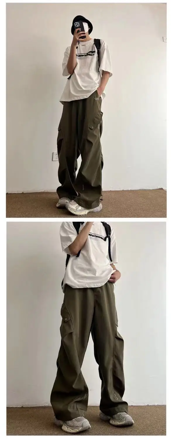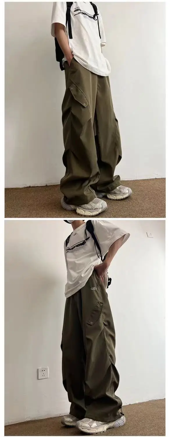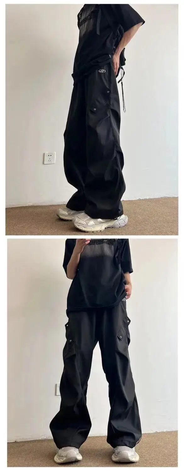 Hearujoy Techwear Parachute Cargo Pants Men Hip Hop Wide Leg Trousers Male Quick Drying Streetwear Loose Oversize Korean Hip Hop
