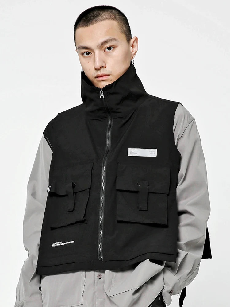 Hearujoy Techwear Sleeveless Jacket Zipper Men's Cardigan Male Black Biker Cargo Vest for Men Motorcyclist Vest Men Safari Style