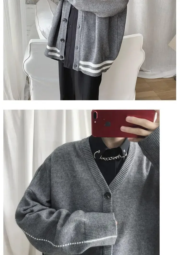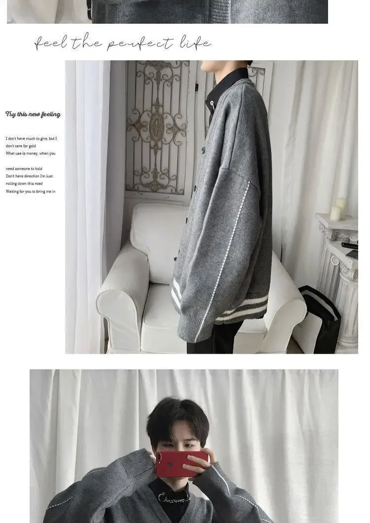 HEARUJOY - Thin jacket men's casual long-sleeved loose knitted cardigan