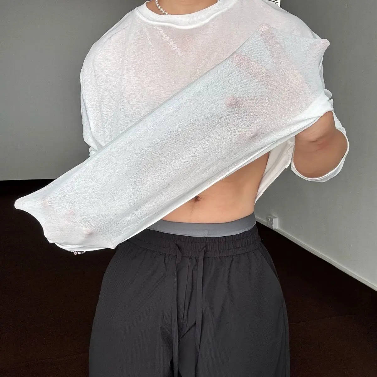 HEARUJOY - Thin Sunproof Pullover Long Sleeve Shirt Cool Mask Print T Shirt Men Loose Fit White Top