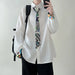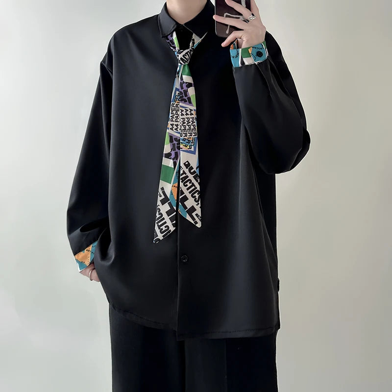 HEARUJOY - Tie Long Sleeved Shirt Men Oversized Society Mens Black Dress Shirt Korean Loose Casual Shirt Mens Ice Silk White Shirts M-2XL