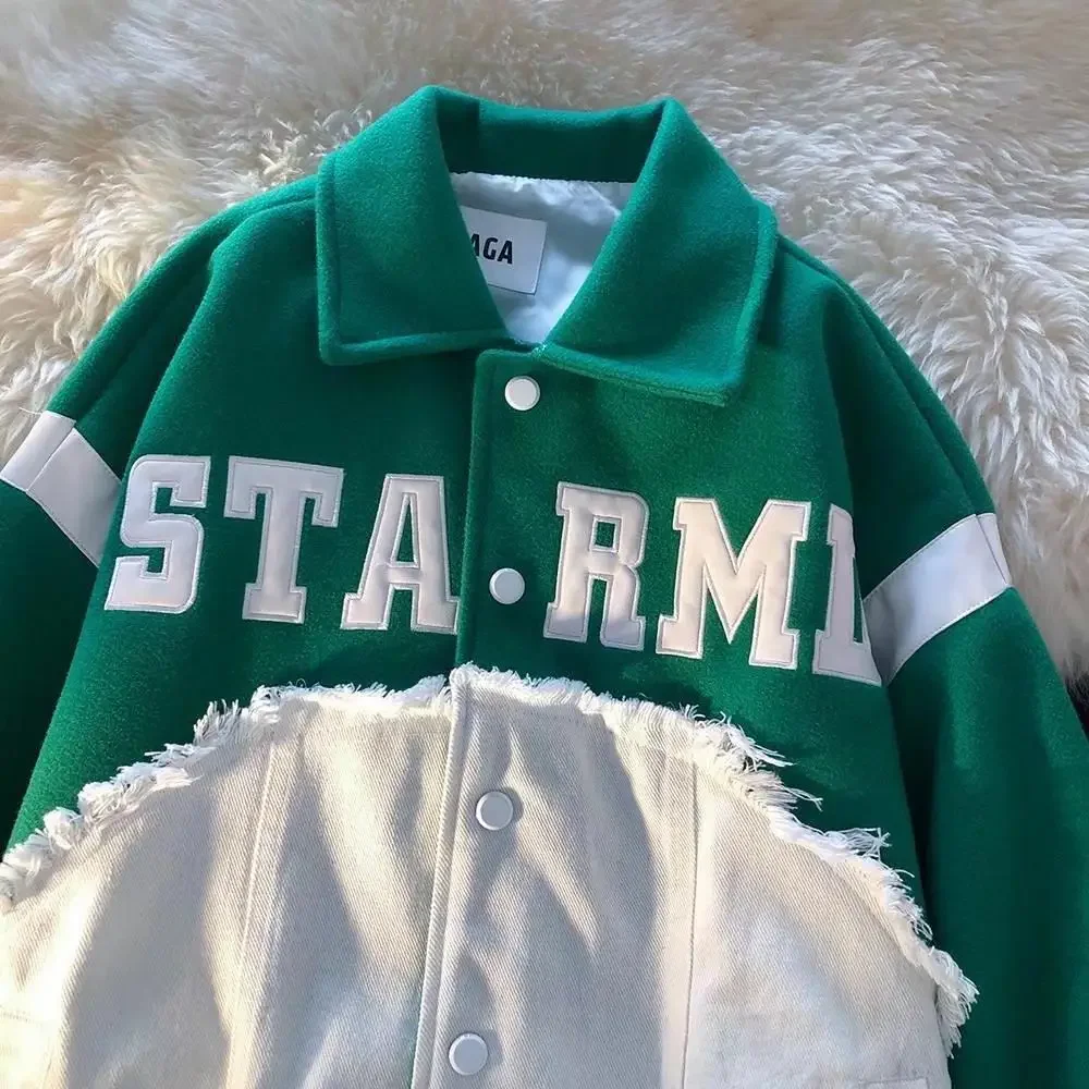 HEARUJOY - Trendy Letter Embroidery Woolen Denim Jacket for Men And Women Spring Autumn Fashion Couple's Baseball Style Short Coat