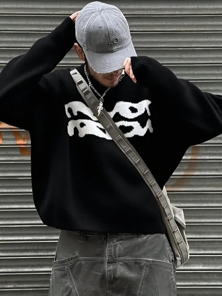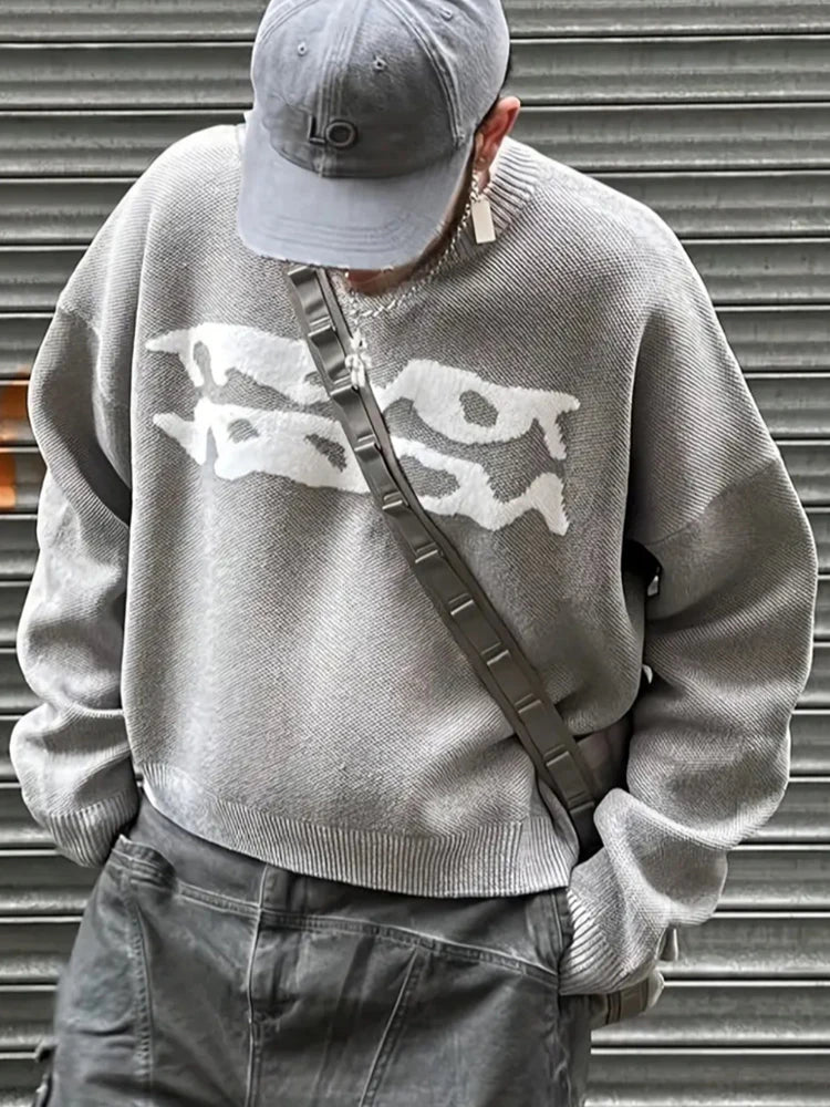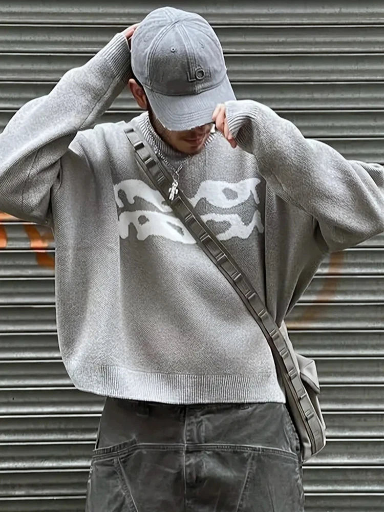 HEARUJOY - Trendy Long Sleeve Knitted Sweaters Men's Outdoor Fashion Crew Neck Loose Sweater Autumn Winter Vintage Mens Knitting Pullovers