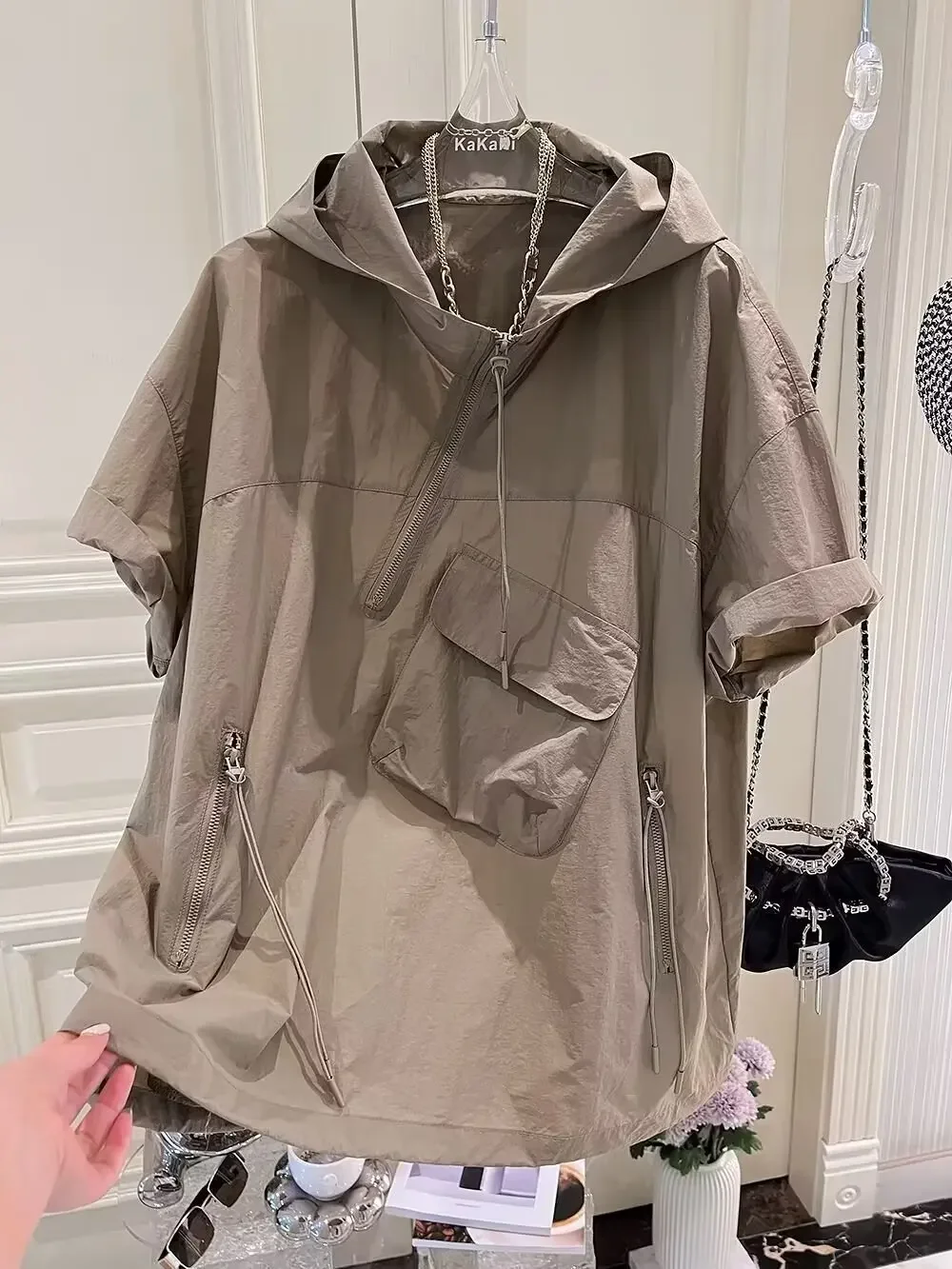 • Zipper Hooded Feature :The zipper hooded design adds a unique touch to this short-sleeved T-shirt, providing both style and convenience.