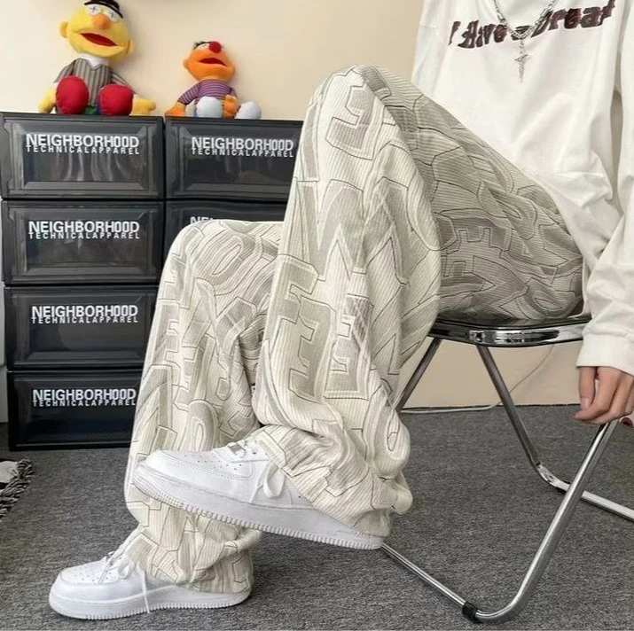HEARUJOY - Trousers Man Sports Pants Printing Graphic Fashion Clearance Sale Casual Cool Essential Trend Retro Sweatpants for Men Straight
