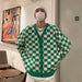 HEARUJOY - V Neck Man Clothes Knitted Sweaters for Men Green Plaid Cardigan Black Jumpers Sale Wool A Mode T Shirt Warm Korean Autumn S Fun