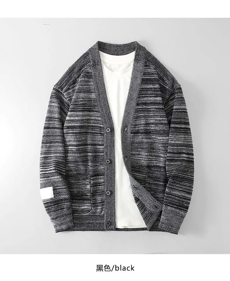 Hearujoy V-neck Striped Knitted Cardigan Sweater Men's Autumn Winter Plus Size Long Sleeved Jacket Vintage Preppy Simple Knitwear Coat