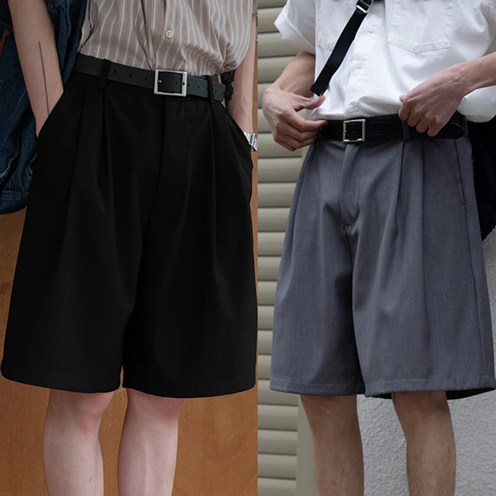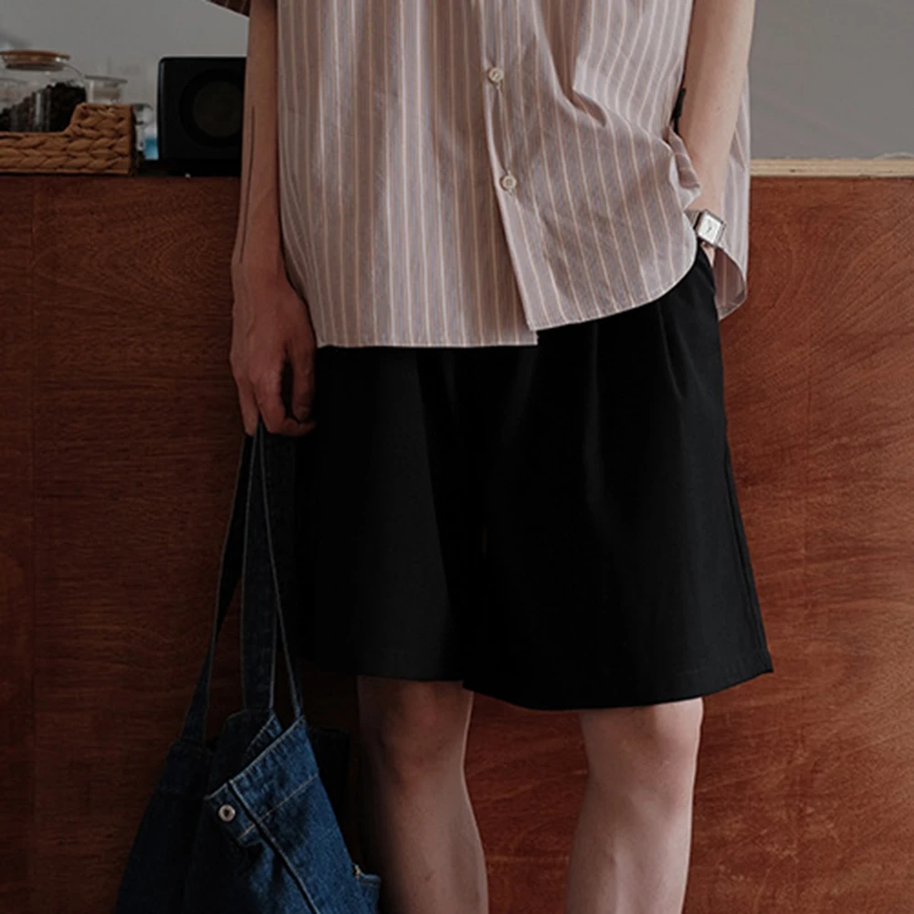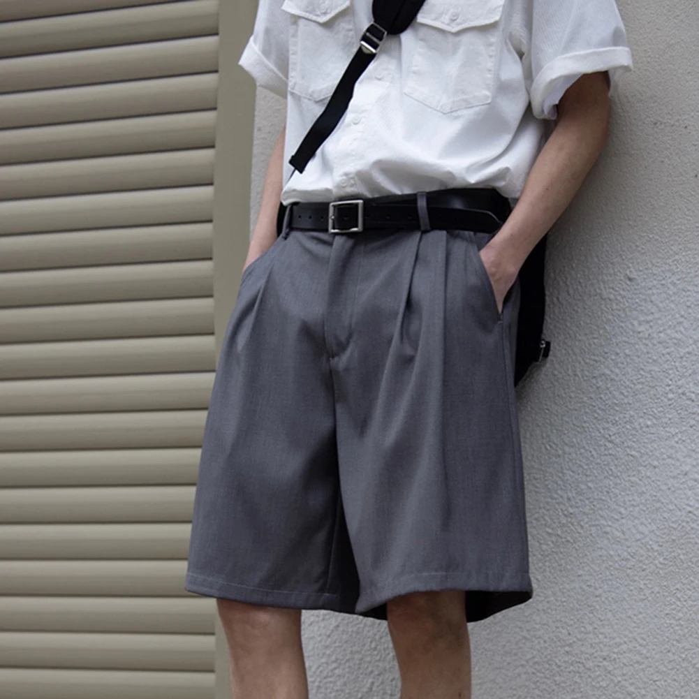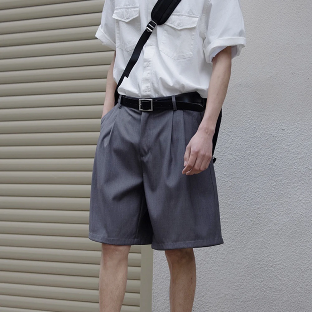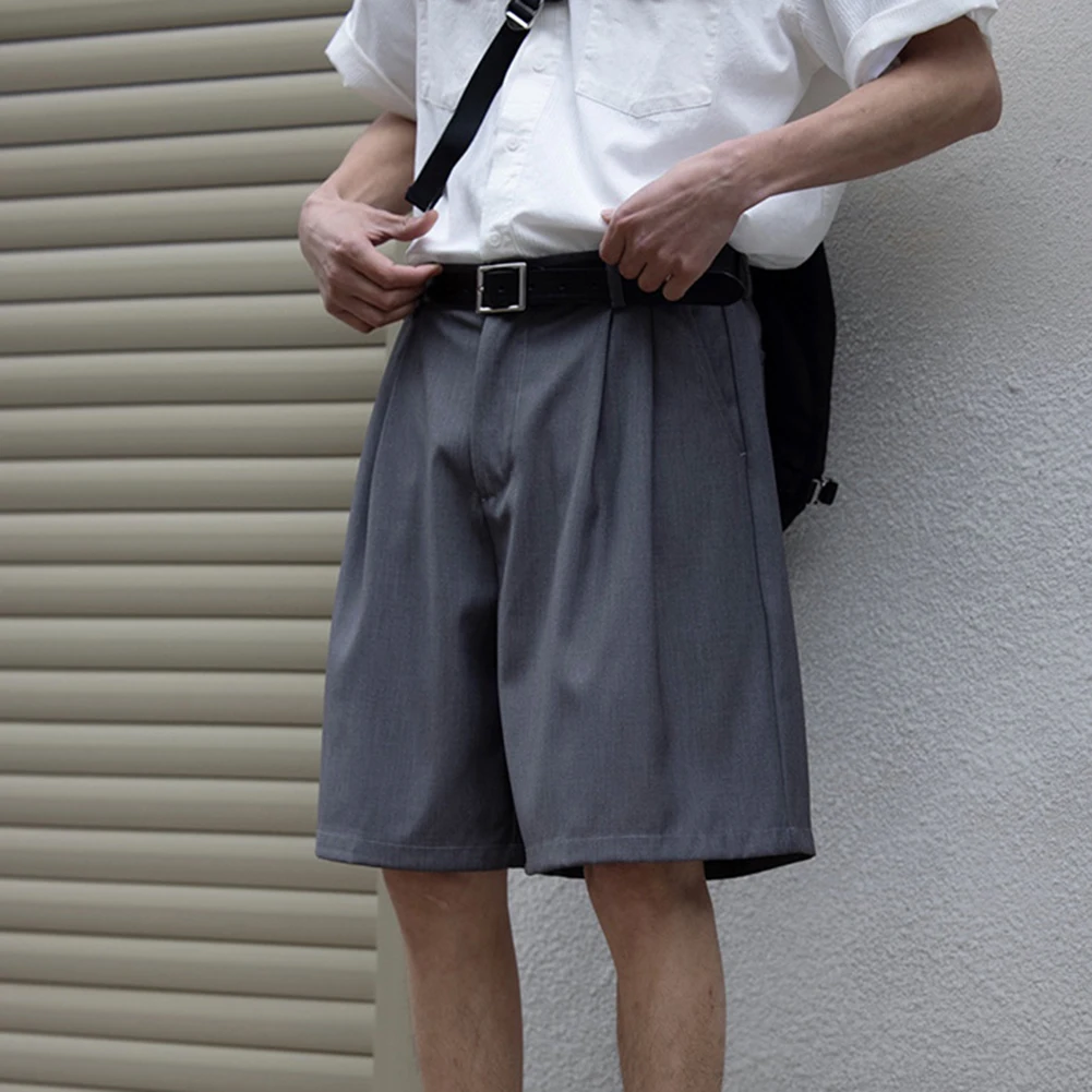HEARUJOY - Vacation Shorts Casual Summer Wear Grey Pleated Loose Fit Sportswear Regular Clothing Length Solid Color Pattern