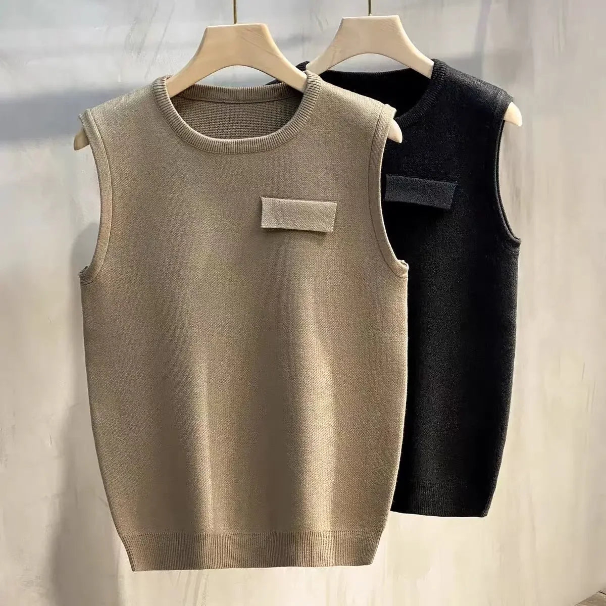 Hearujoy Vest Icon Crewneck Knitted Sweaters for Men Sleeveless Man Clothes Waistcoat Round Collar Black Street Thick Winter Old Elegant