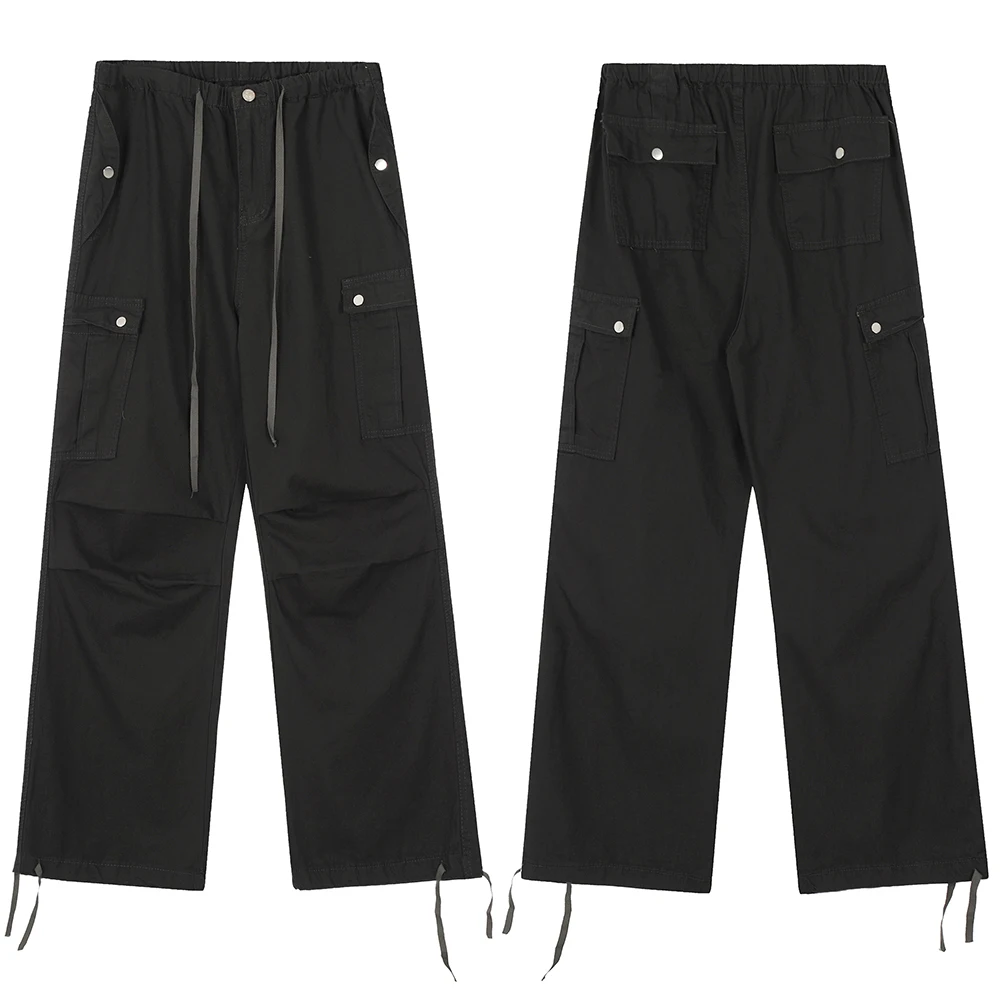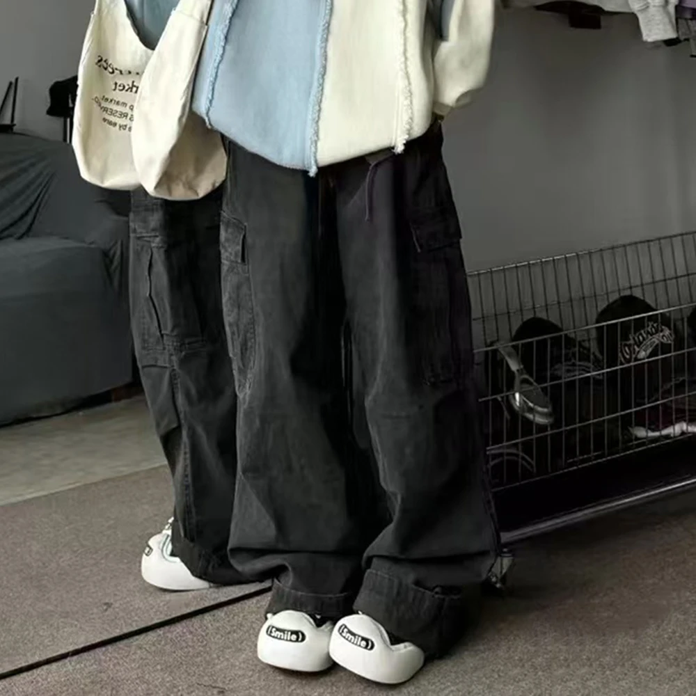 Hearujoy Vintage Cleanfit Washed Drawstring Stretch Gray Jeans Mens and Womens Straight Casual Baggy Loose Denim Trousers Oversized