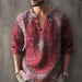 HEARUJOY - Vintage Ethnic flower 3D Print Shirt For Men Spring Autumn Long sleeve V-neck Tee Tops Fashion Casual Pullover Shirts Streetwear