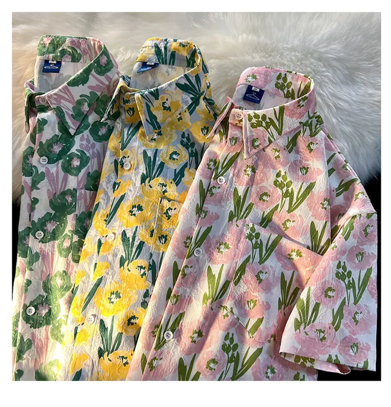 Hearujoy Vintage Fashion Flower Print Button Up Shirt Women Shirts Blouses Summer Casual Short Sleeve Streetwear Woman Shirts Harajuku
