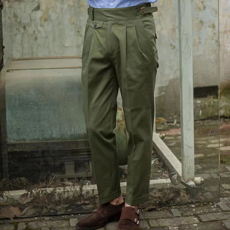 HEARUJOY - Vintage Green Gurkha Pants For Men Adjustable Waist Buckle Cotton Naples Trousers Fashion Casual Loose Ankle-Length Cargo Pants