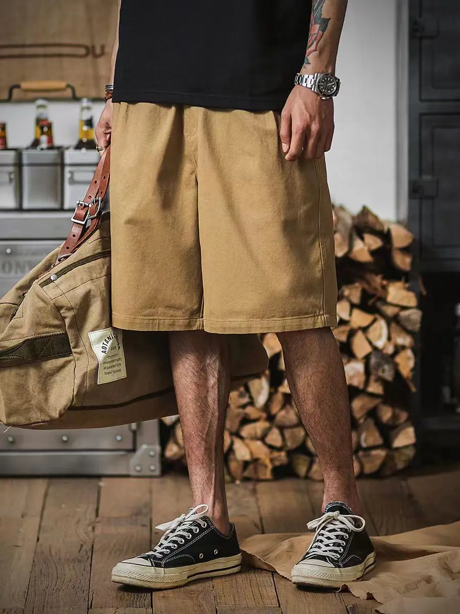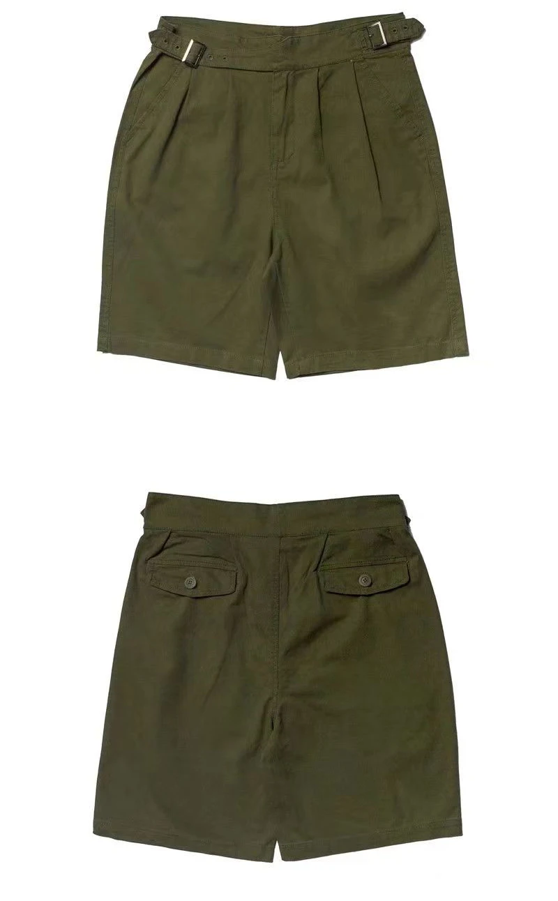HEARUJOY - Vintage Gurkha Shorts Men Safari Style High Waist Buckle Button Knee Length Naples Pants Summer Casual Loose Shorts High Quality