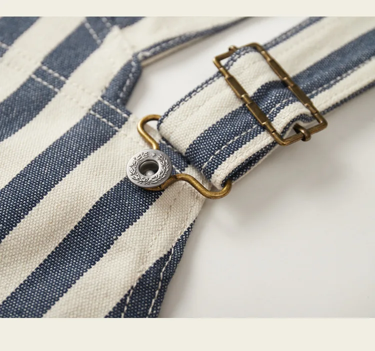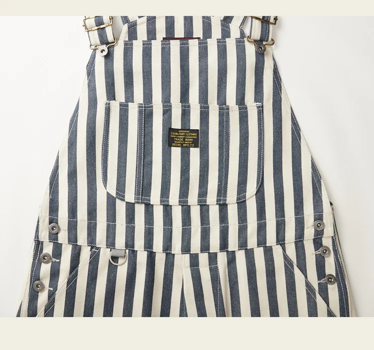 HEARUJOY - Vintage Men's American Retro Motorcycle Overalls Striped Bib Denim Jumpsuit 100% Cotton Autumn Pants Heavyweight