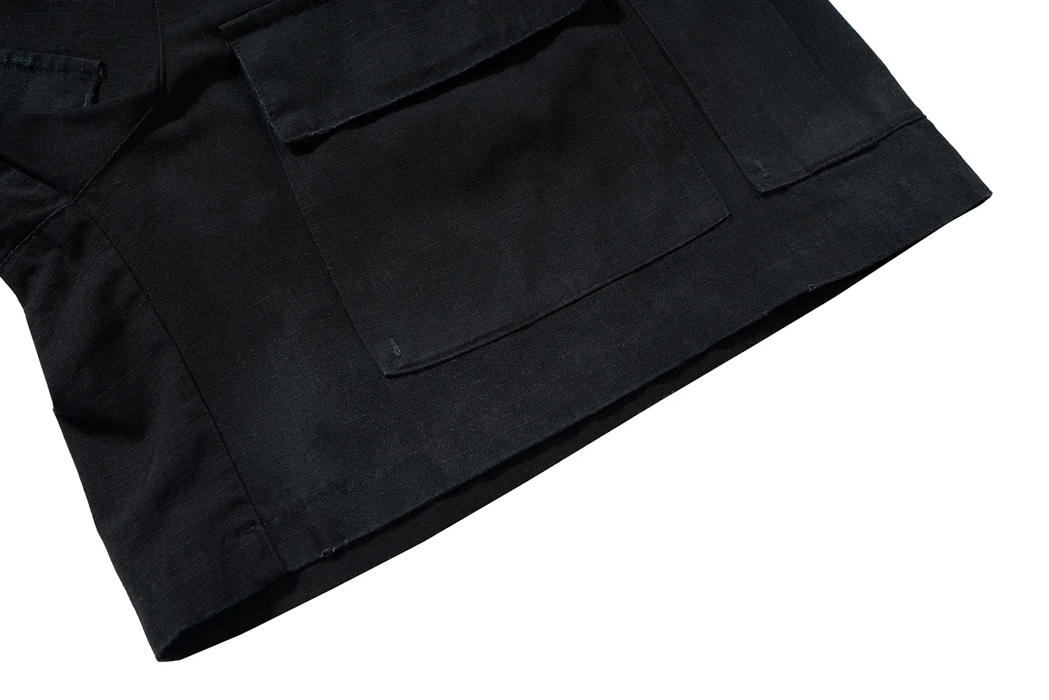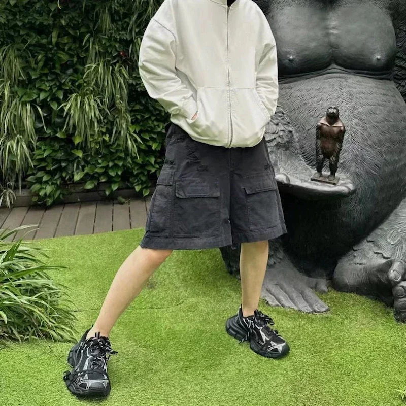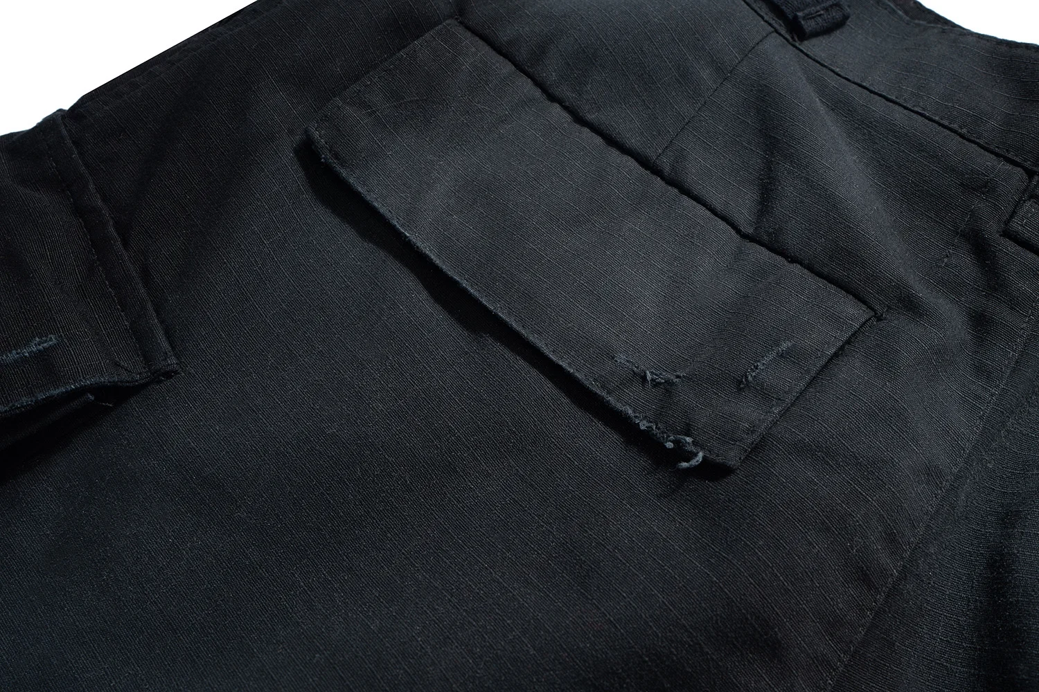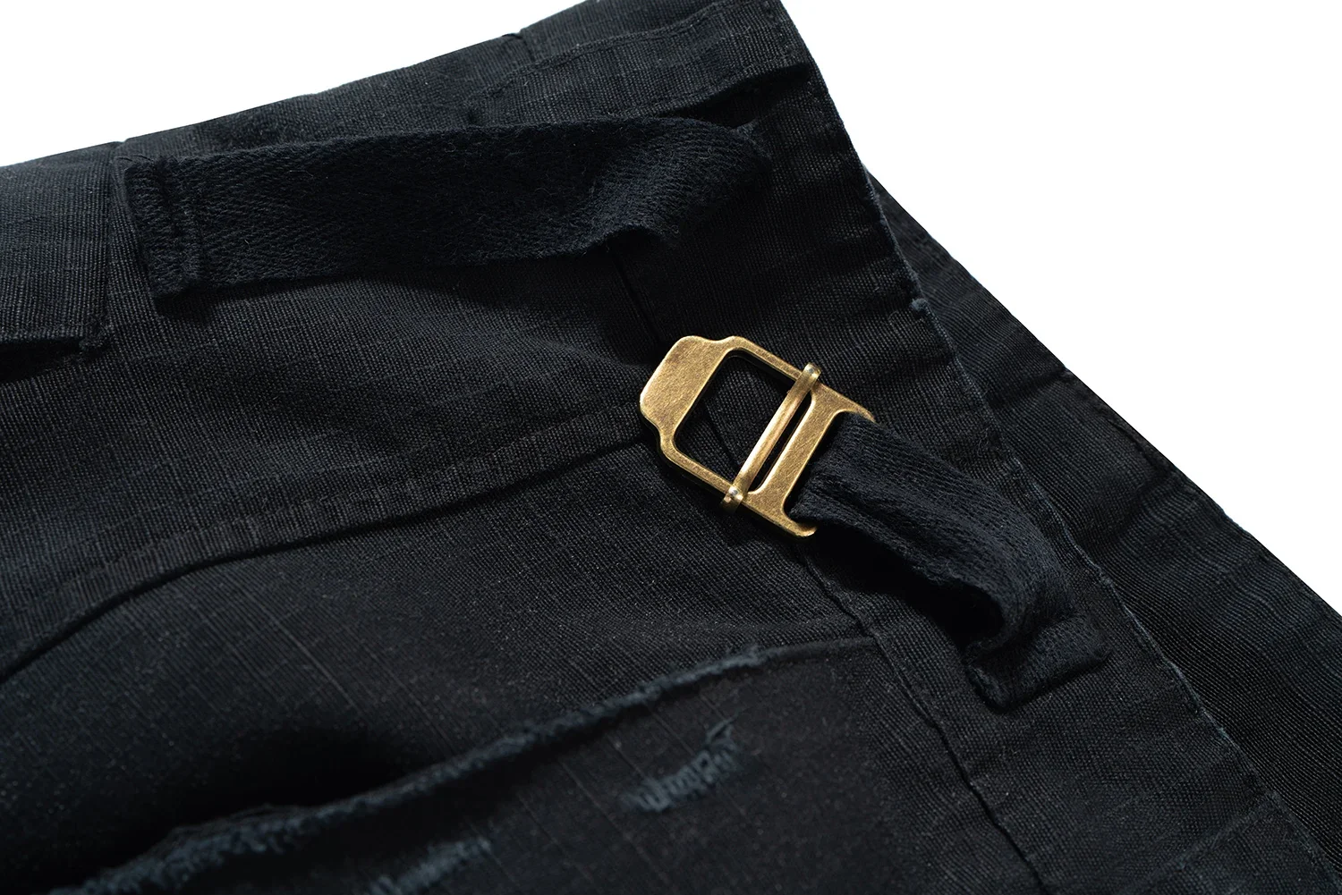 Hearujoy Vintage Ripped Damaged Black Cargo Shorts for Men High Street Wide Leg Baggy Overalls Distressed Summer Knee Length Pants