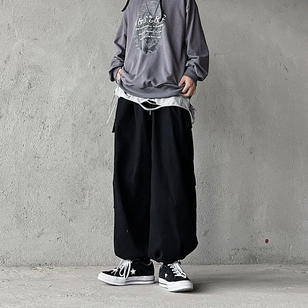 Hearujoy Vintage Y2k Baggy Pants Fashion Streetwear Wide Leg Oversize Cargo Pants Men Full-length Straight Long Trousers 2024 New