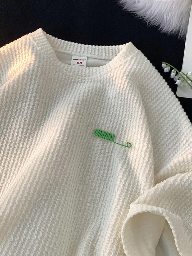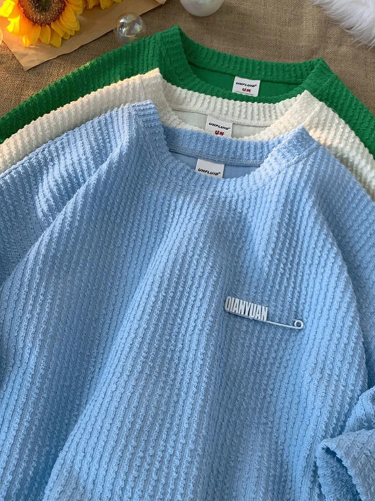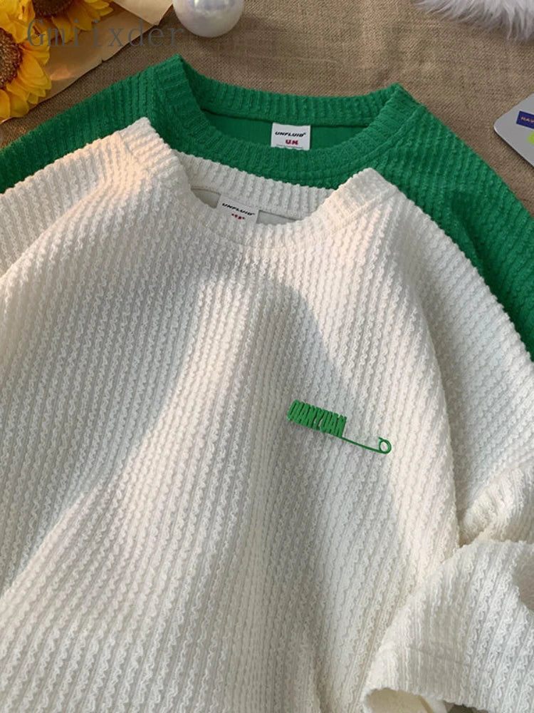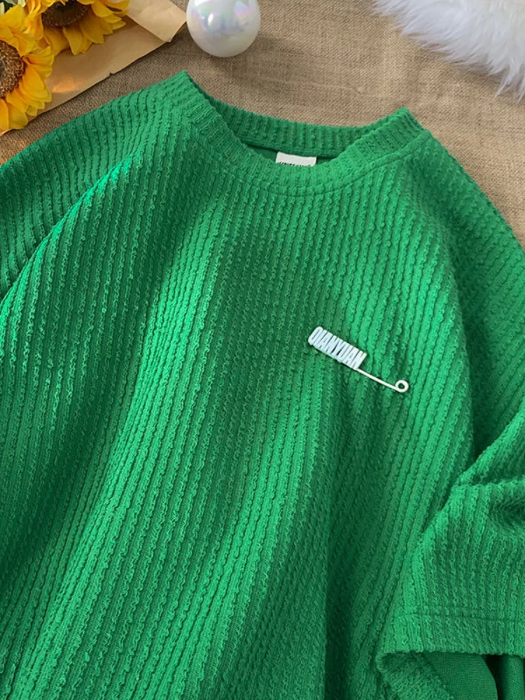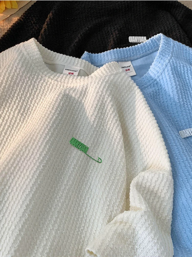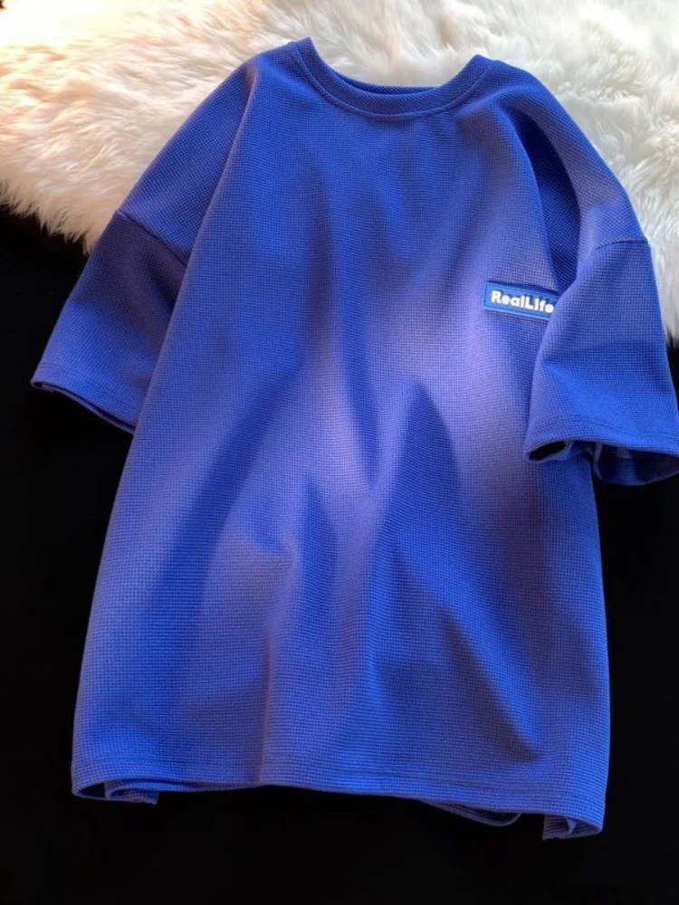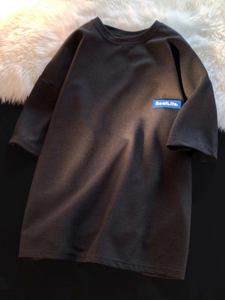 Hearujoy Waffle Short-sleeved T-shirt Niche Designer Unique Special Top Men Summer Lovers Loose High Street Hong Kong Style Tees