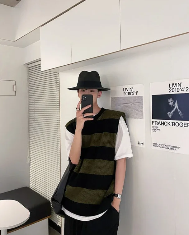 HEARUJOY - Waistcoat Sleeveless Long Sweater Man V Neck Knit Vests for Men Korean Popular Clothes Cheap Knitwear Cashmere Elegant Smooth