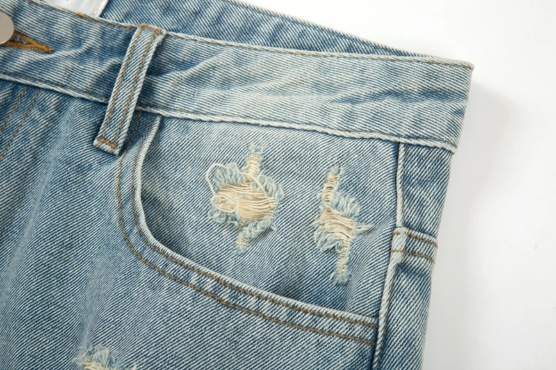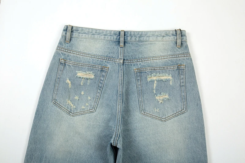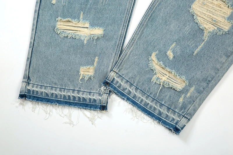 Hearujoy Washed Blue Oversized Torn Jeans for Men Streetwear Hip Hop Large Destroyed Wide Leg Jeans Baggy Straight Ripped Denim Pants