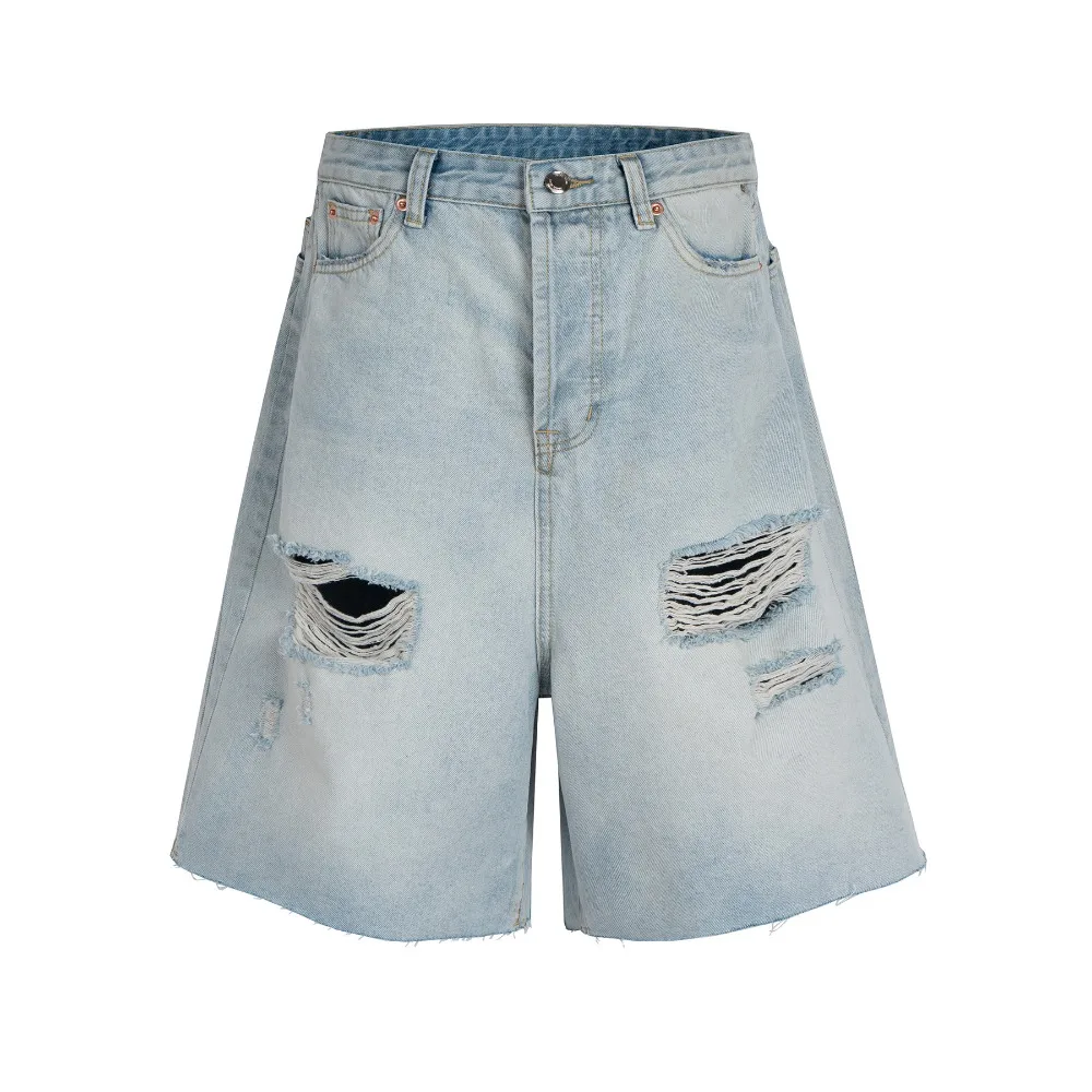 HEARUJOY - Washing Vintage Holes Casual Ripped Jorts Distressed Y2k Jeans Men