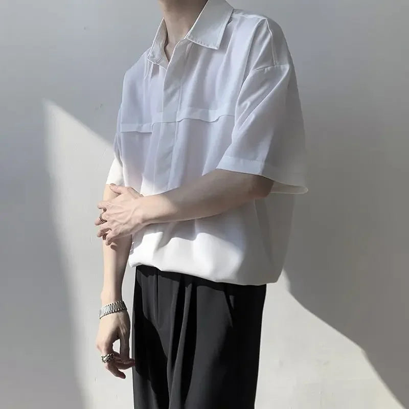 HEARUJOY - White Man Shirt Short Sleeve Shirts for Men Plain High Quality Luxury with Collar New in Designer Vintage Summer Casual Silk
